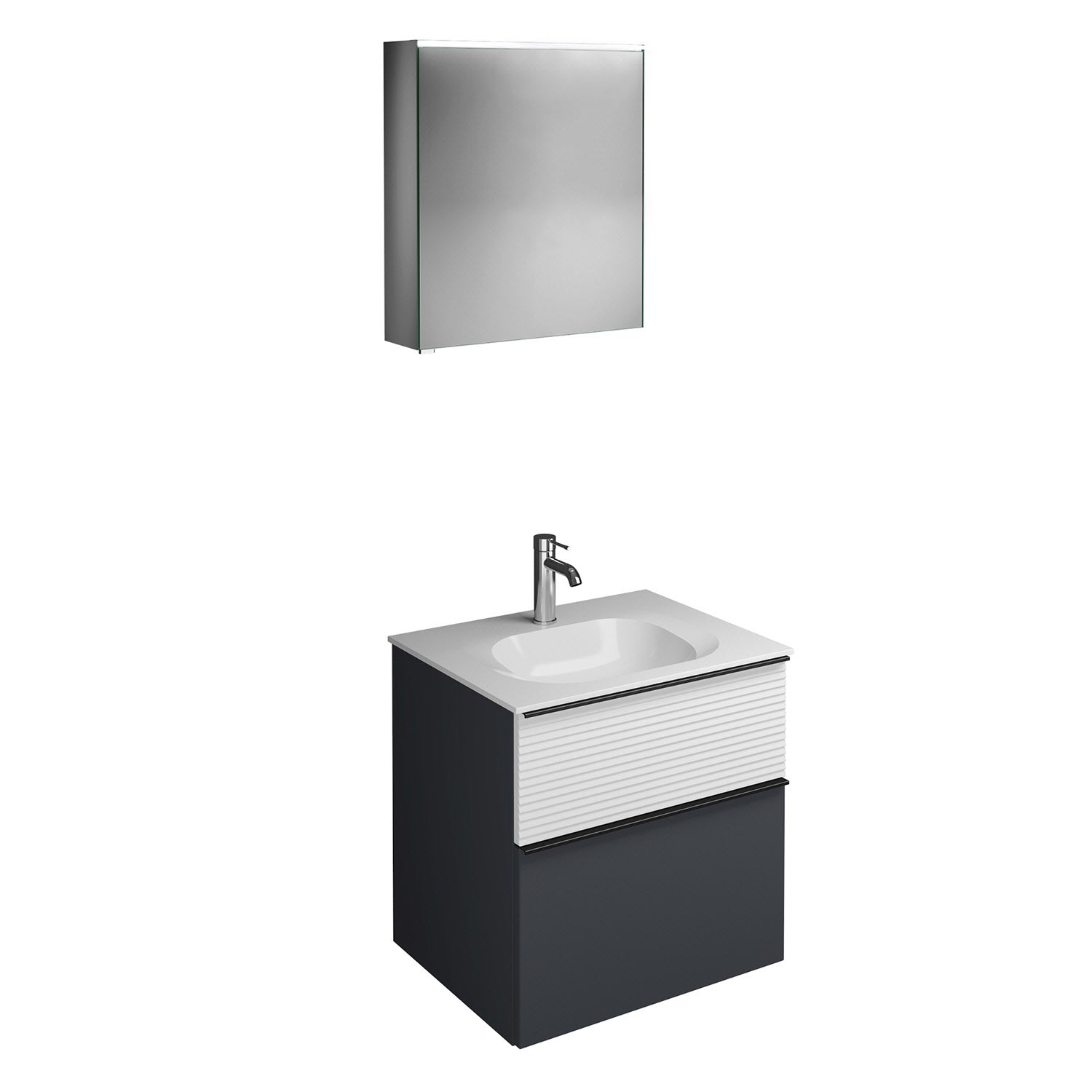 burgbad Fiumo Badmöbel-Set 62 cm mit Waschtisch und Unterschrank mit Griff G0200 sowie mit Spiegelschrank mit Türanschlag rechts