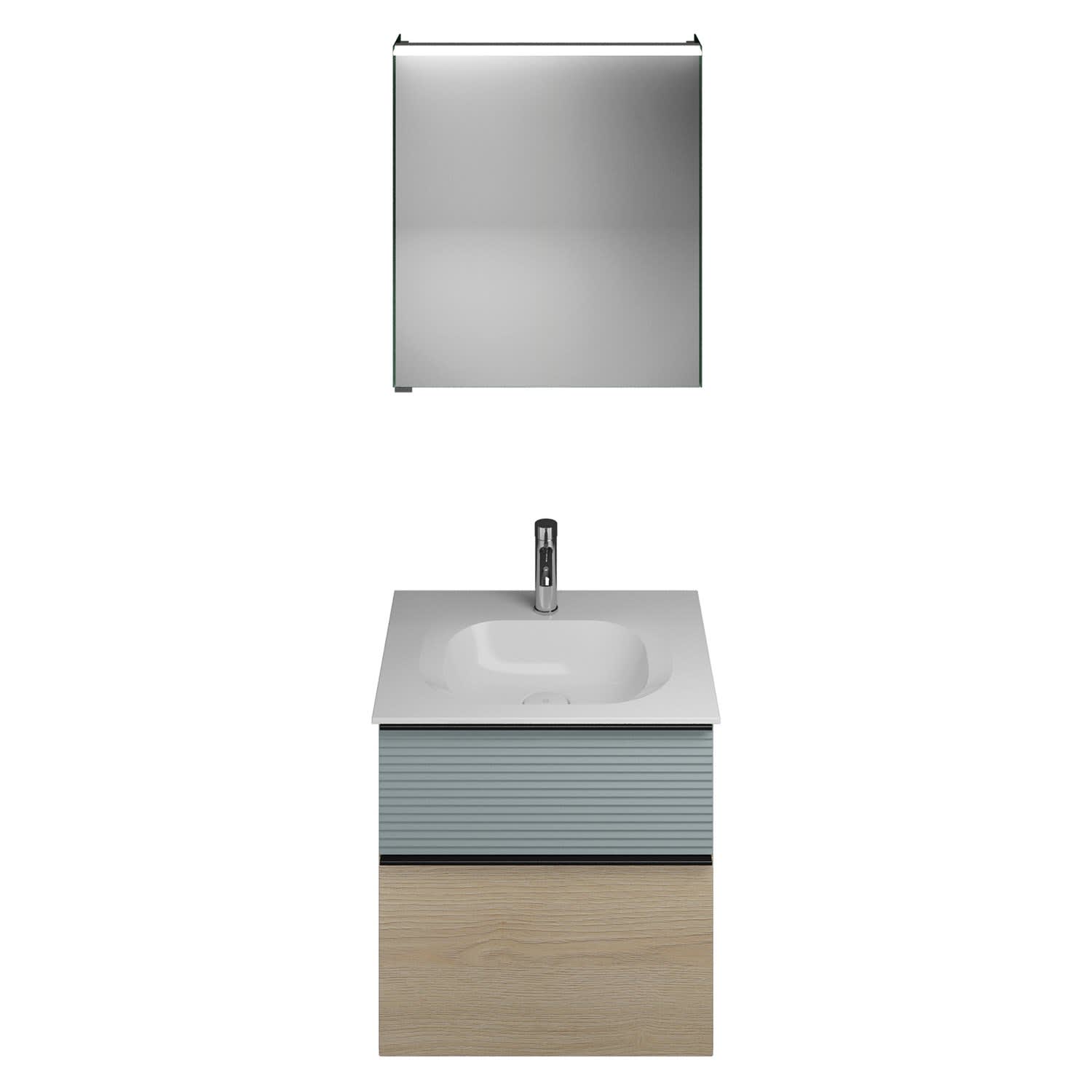 burgbad Fiumo Badmöbel-Set 62 cm mit Waschtisch und Unterschrank mit Griff G0200 sowie mit Spiegelschrank mit Türanschlag rechts