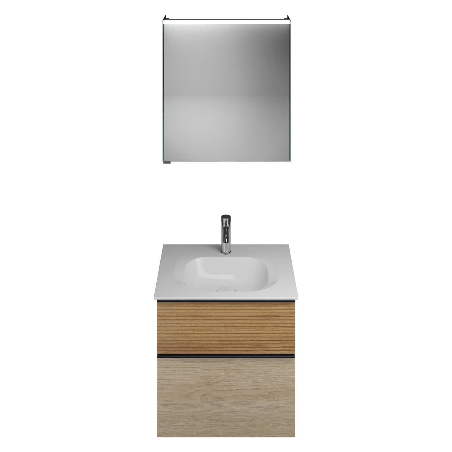 burgbad Fiumo Badmöbel-Set 62 cm mit Waschtisch und Unterschrank mit Griff G0200 sowie mit Spiegelschrank mit Türanschlag rechts