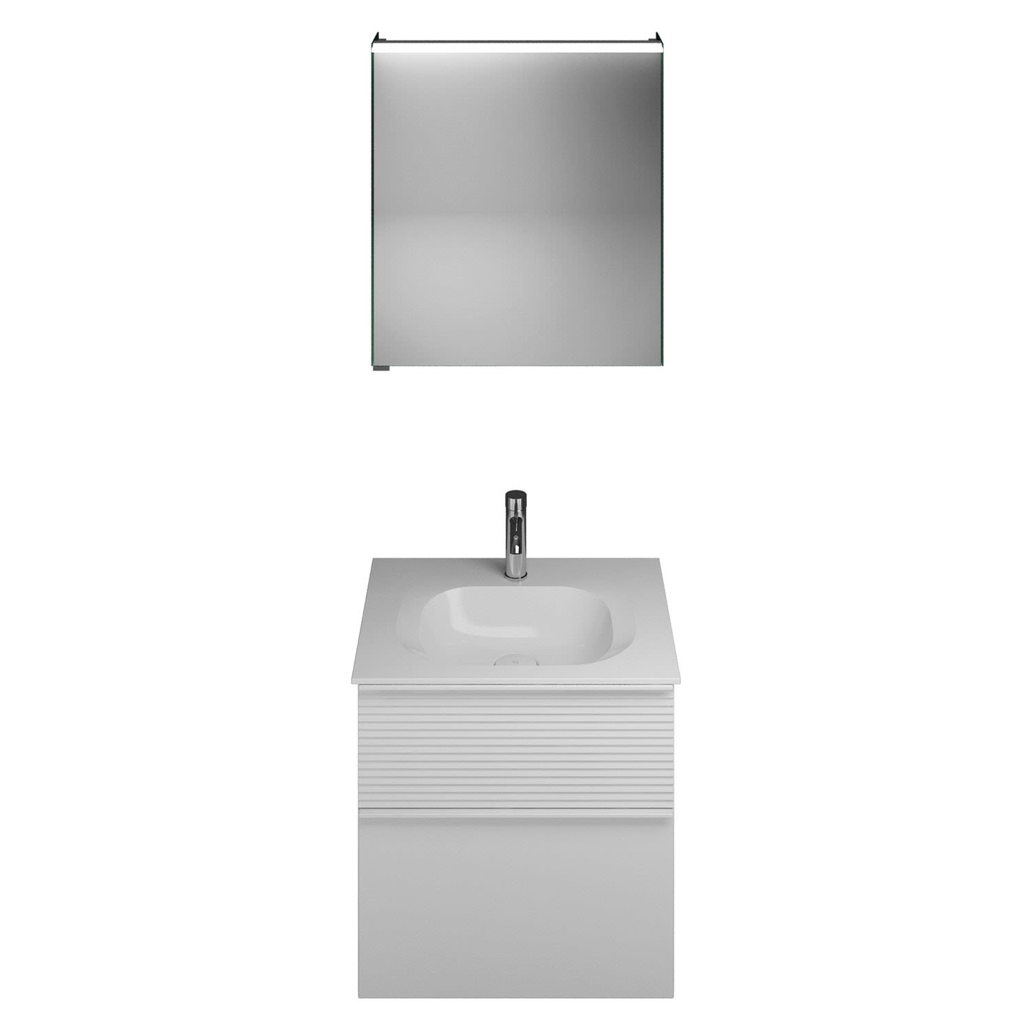 burgbad Fiumo Badmöbel-Set 62 cm mit Waschtisch und Unterschrank mit Griff G0223 sowie mit Spiegelschrank mit Türanschlag rechts