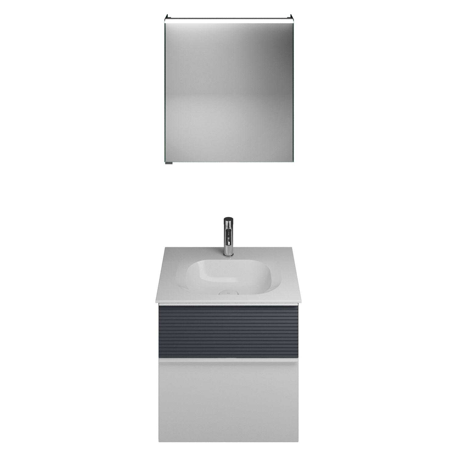 burgbad Fiumo Badmöbel-Set 62 cm mit Waschtisch und Unterschrank mit Griff G0223 sowie mit Spiegelschrank mit Türanschlag rechts