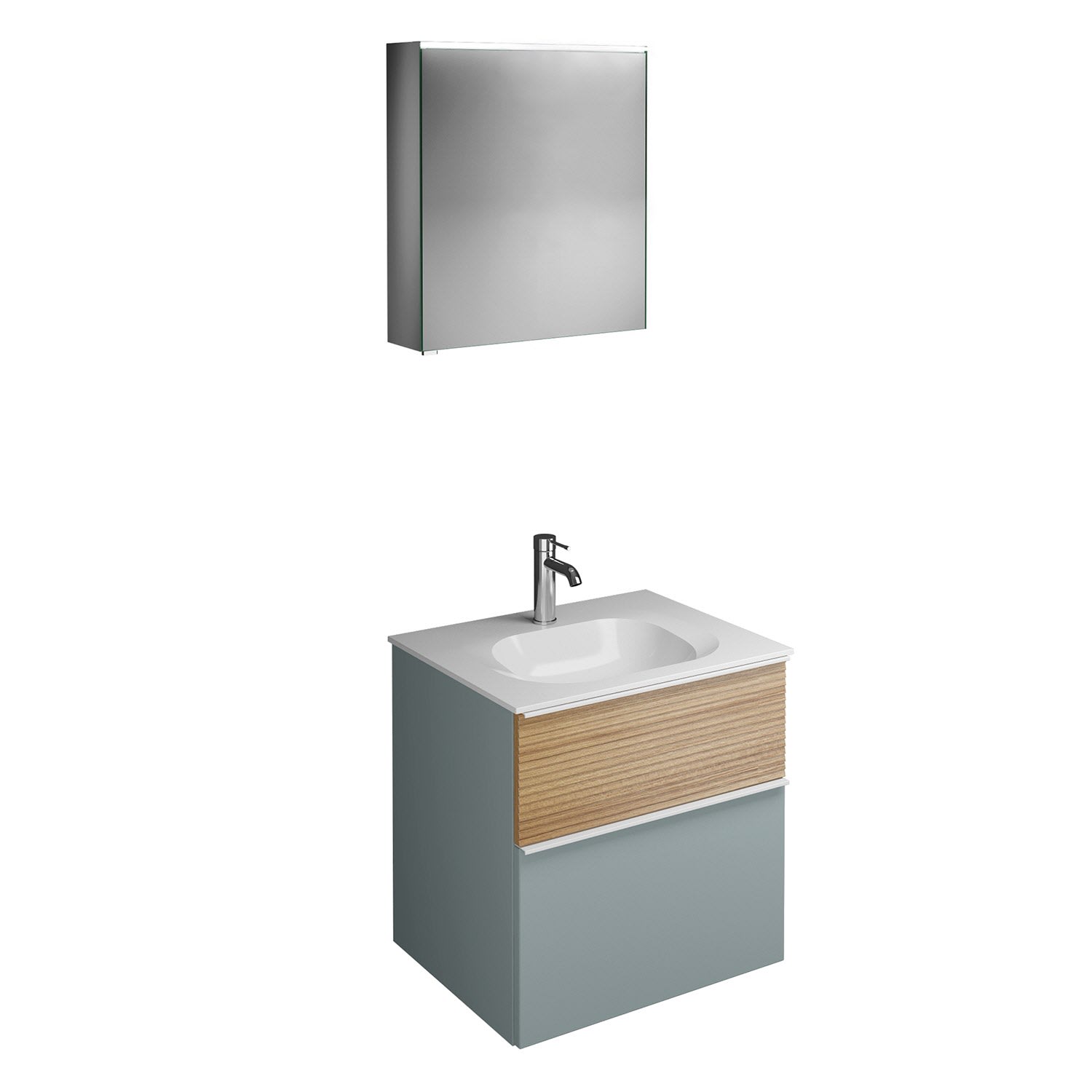 burgbad Fiumo Badmöbel-Set 62 cm mit Waschtisch und Unterschrank mit Griff G0223 sowie mit Spiegelschrank mit Türanschlag rechts