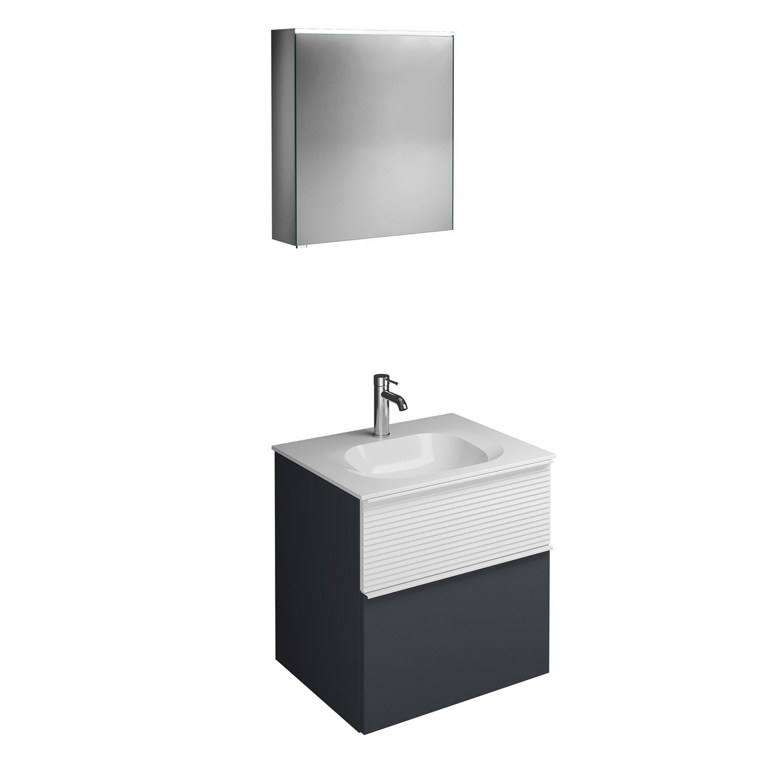 burgbad Fiumo Badmöbel-Set 62 cm mit Waschtisch und Unterschrank mit Griff G0223 sowie mit Spiegelschrank mit Türanschlag rechts