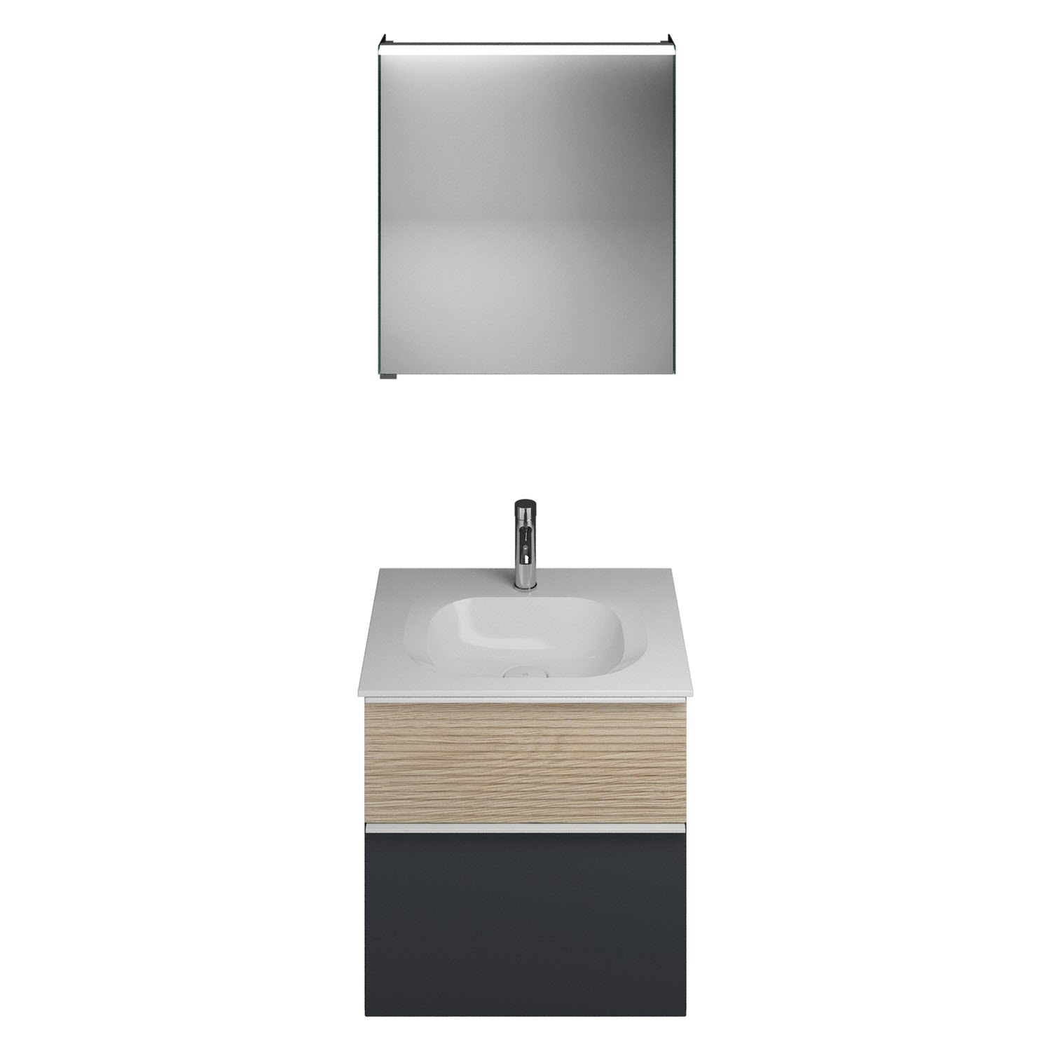 burgbad Fiumo Badmöbel-Set 62 cm mit Waschtisch und Unterschrank mit Griff G0223 sowie mit Spiegelschrank mit Türanschlag rechts