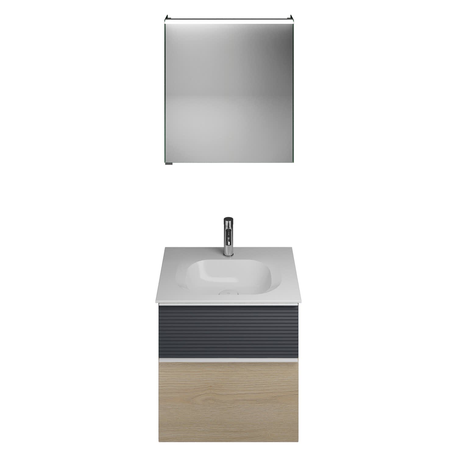 burgbad Fiumo Badmöbel-Set 62 cm mit Waschtisch und Unterschrank mit Griff G0223 sowie mit Spiegelschrank mit Türanschlag rechts