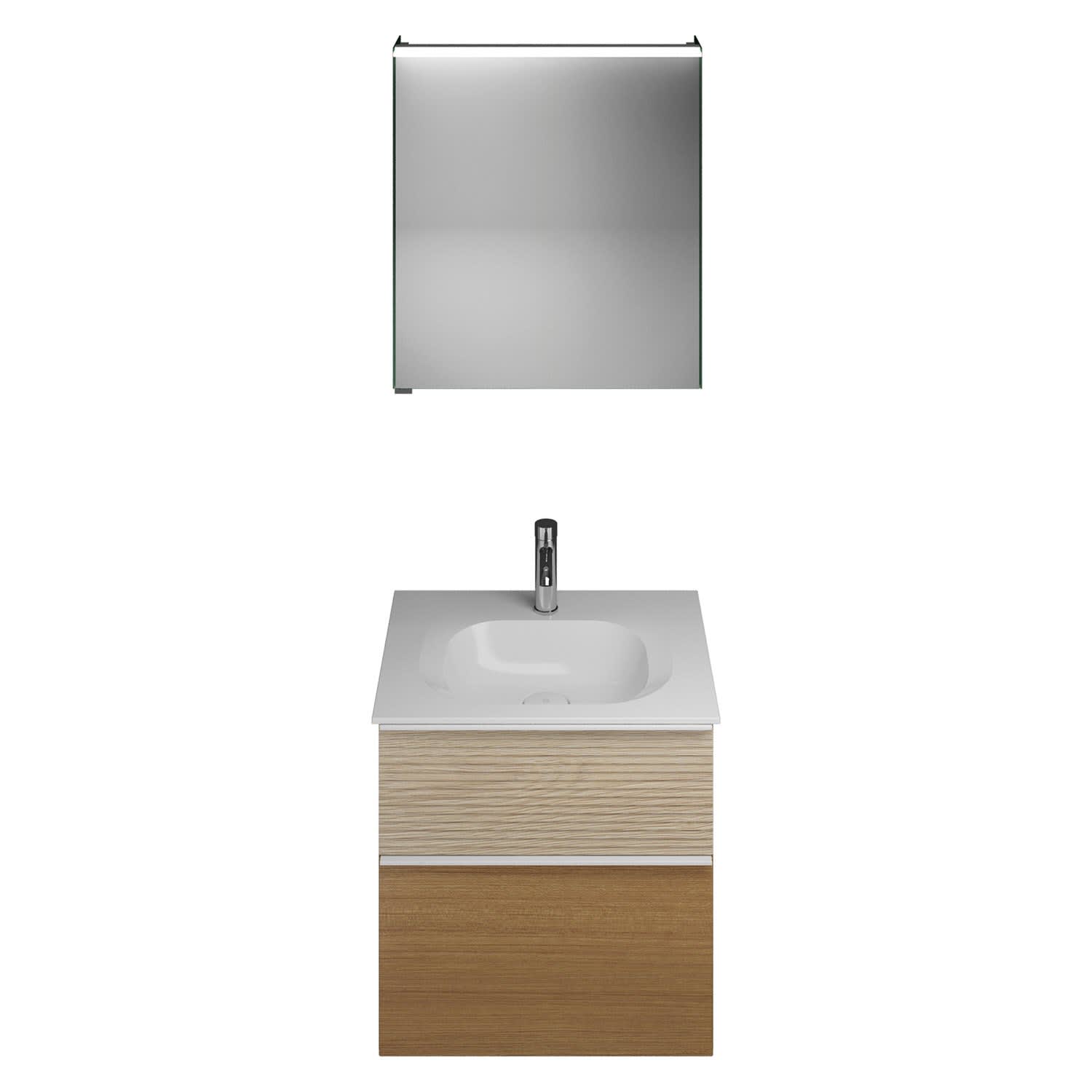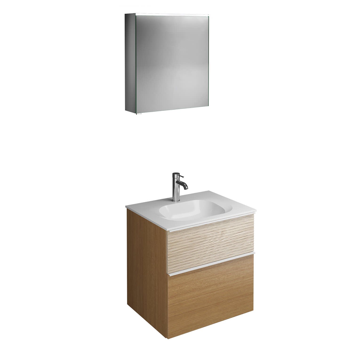 burgbad Fiumo Badmöbel-Set 62 cm mit Waschtisch und Unterschrank mit Griff G0223 sowie mit Spiegelschrank mit Türanschlag rechts