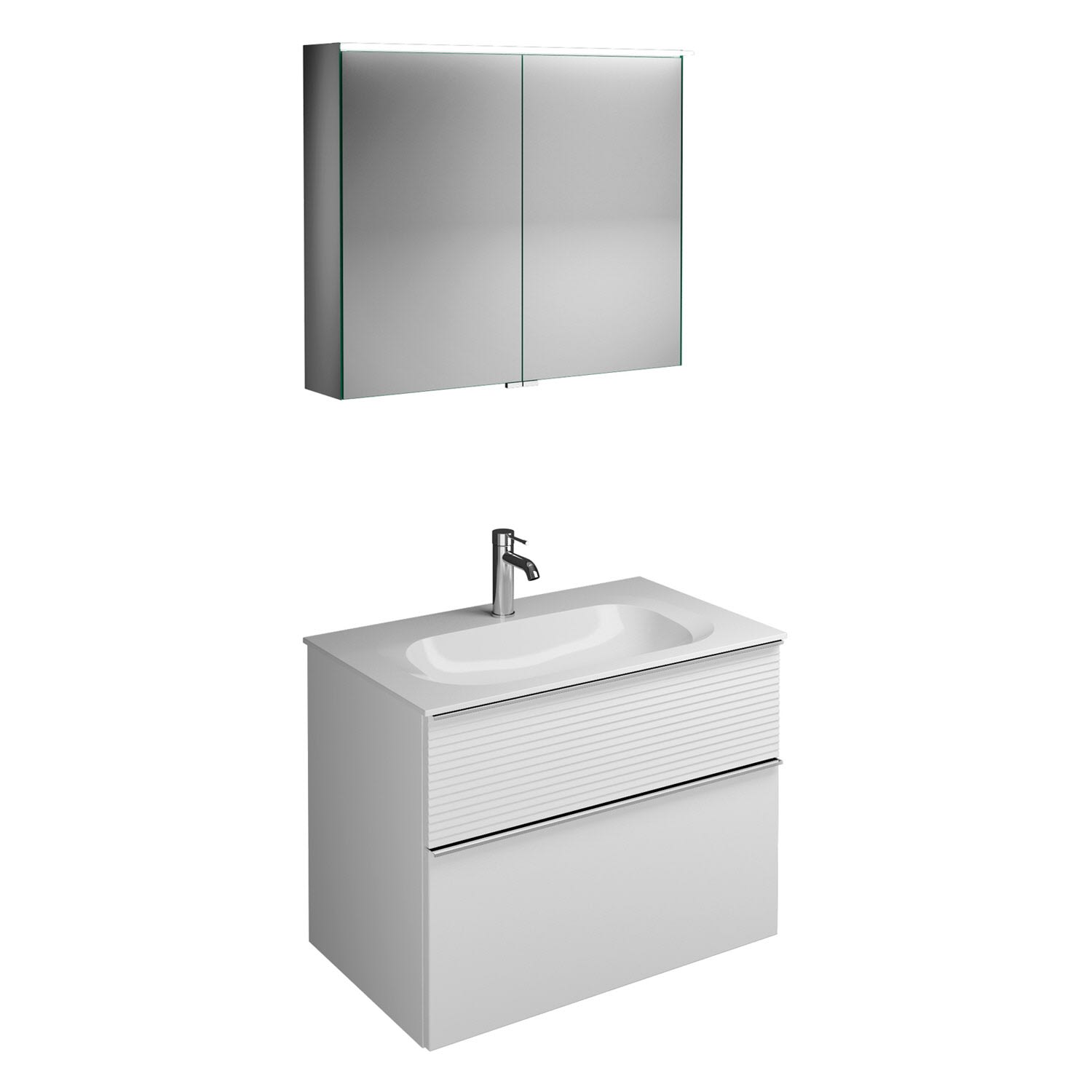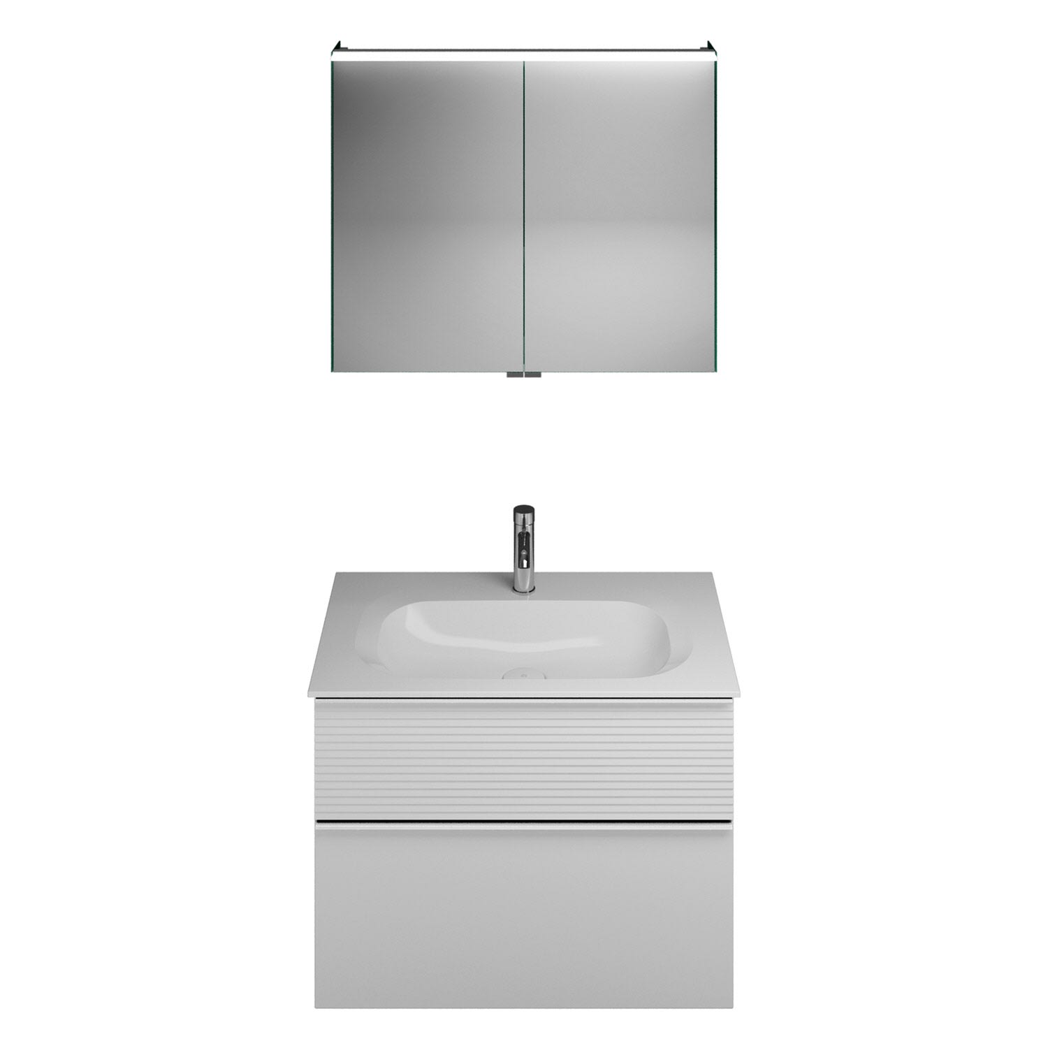 burgbad Fiumo Badmöbel-Set 82 cm mit Waschtisch und Unterschrank mit Griff G0146 sowie mit Spiegelschrank