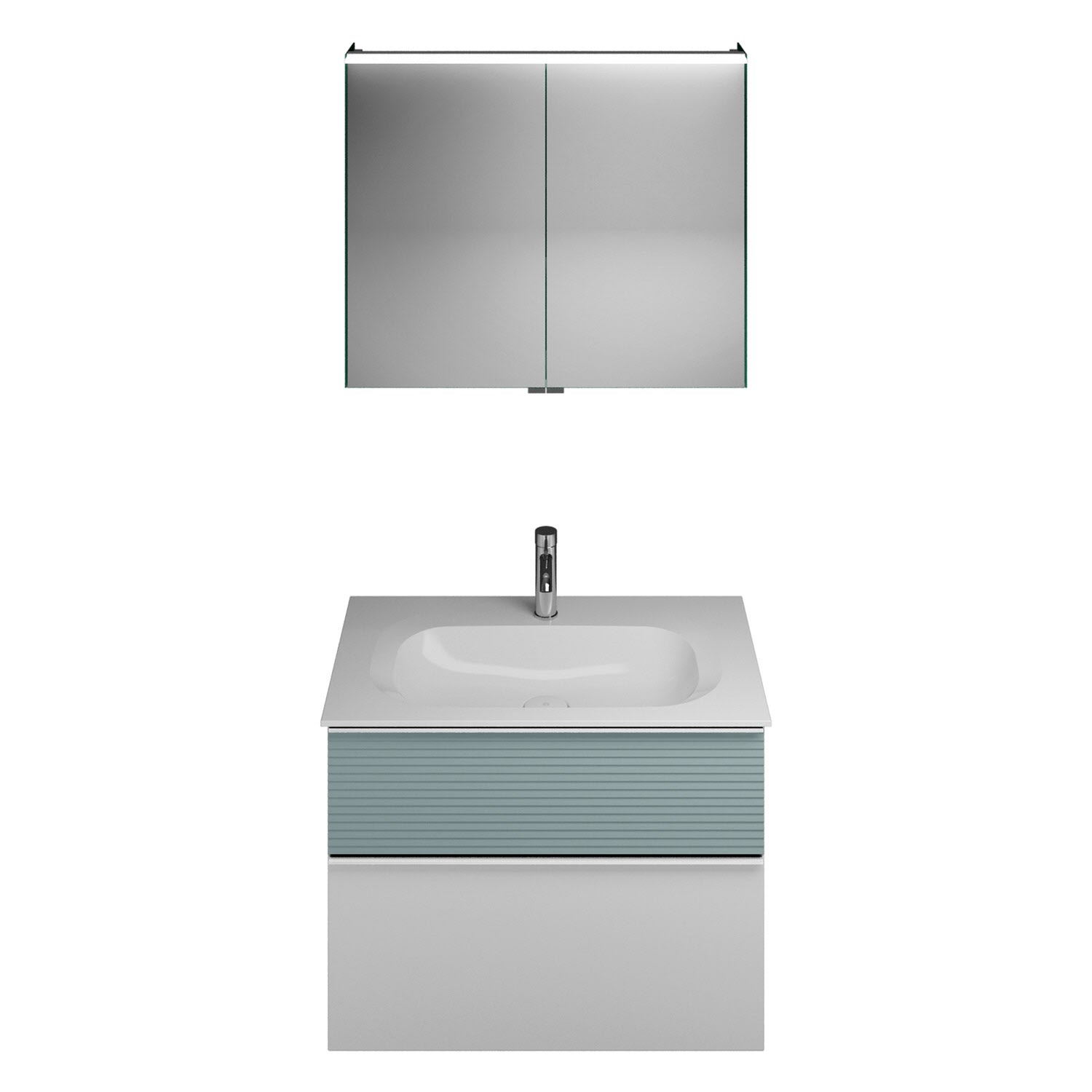 burgbad Fiumo Badmöbel-Set 82 cm mit Waschtisch und Unterschrank mit Griff G0146 sowie mit Spiegelschrank