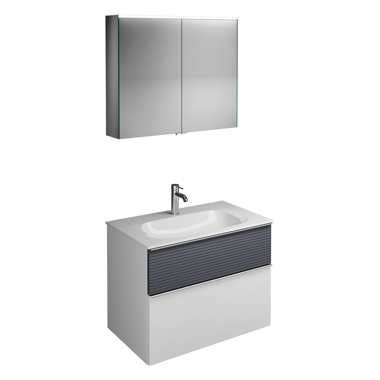 burgbad Fiumo Badmöbel-Set 82 cm mit Waschtisch und Unterschrank mit Griff G0146 sowie mit Spiegelschrank