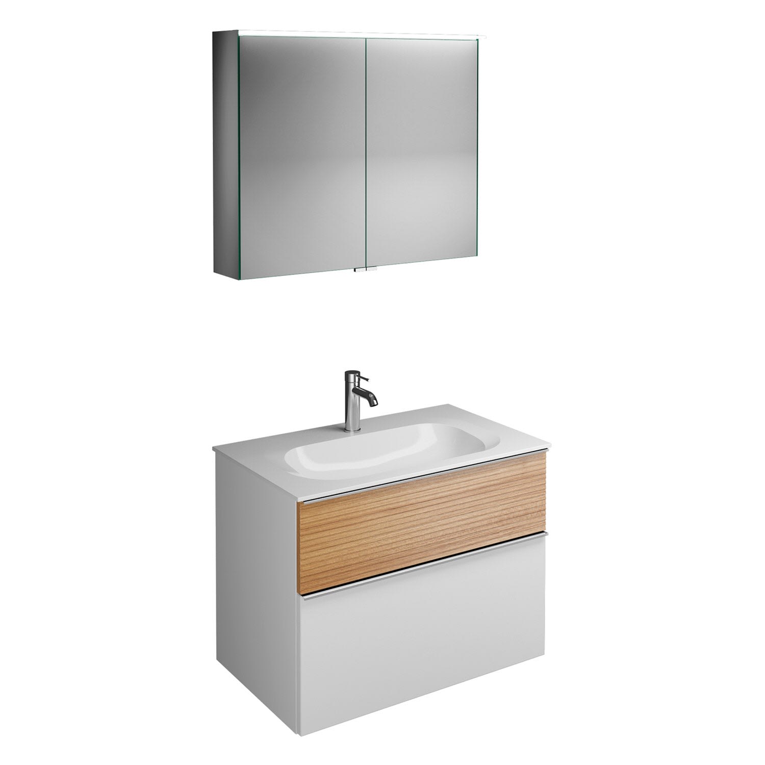 burgbad Fiumo Badmöbel-Set 82 cm mit Waschtisch und Unterschrank mit Griff G0146 sowie mit Spiegelschrank