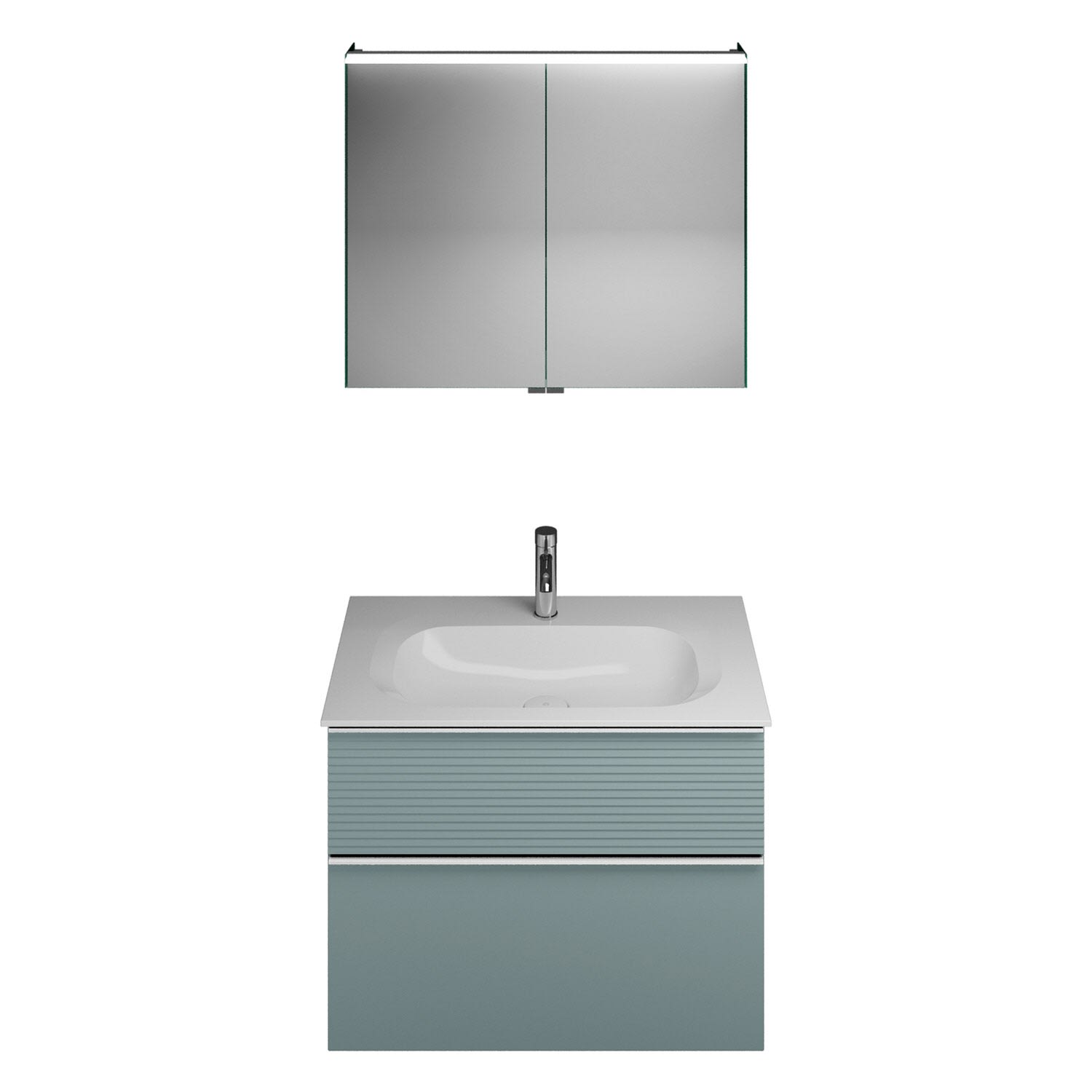 burgbad Fiumo Badmöbel-Set 82 cm mit Waschtisch und Unterschrank mit Griff G0146 sowie mit Spiegelschrank