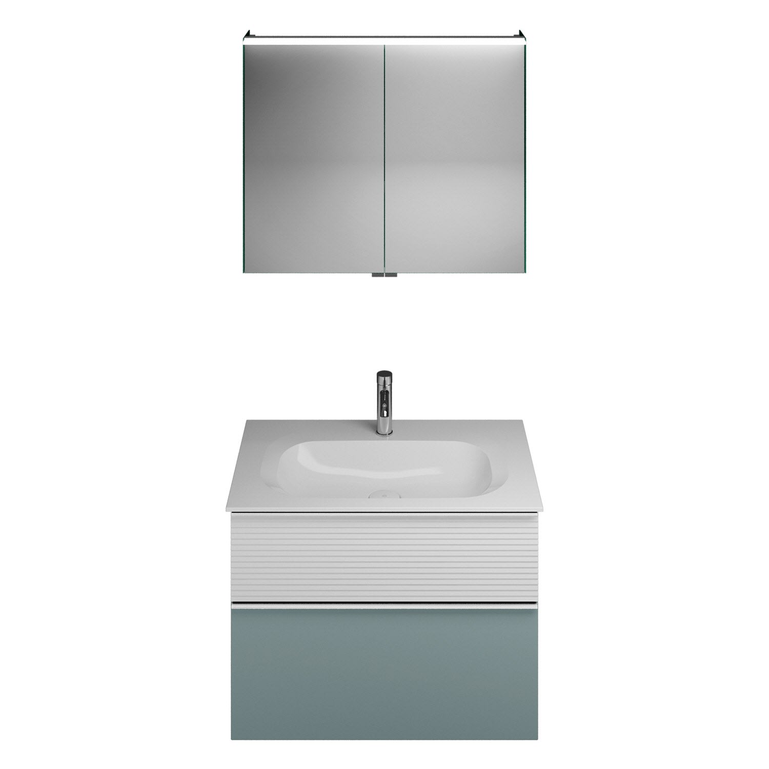 burgbad Fiumo Badmöbel-Set 82 cm mit Waschtisch und Unterschrank mit Griff G0146 sowie mit Spiegelschrank