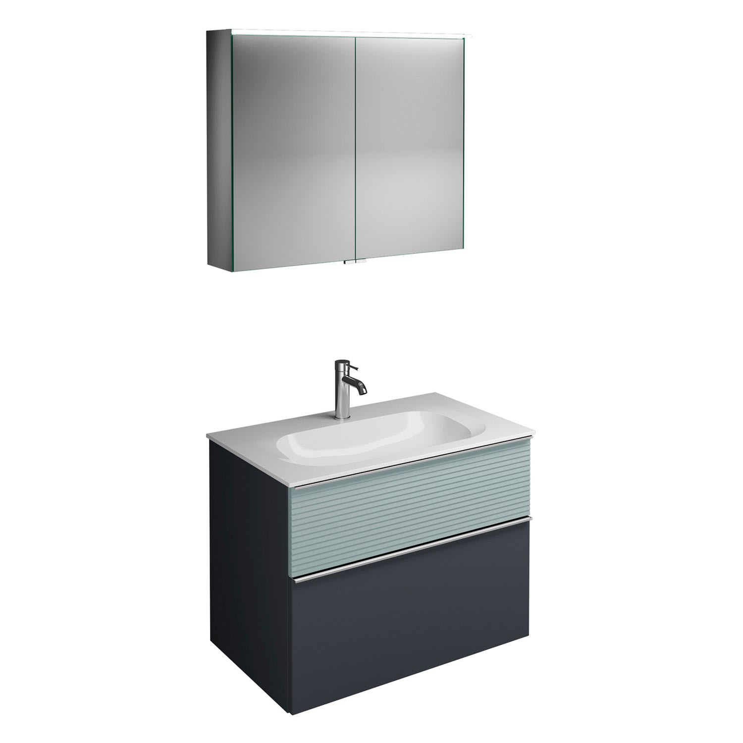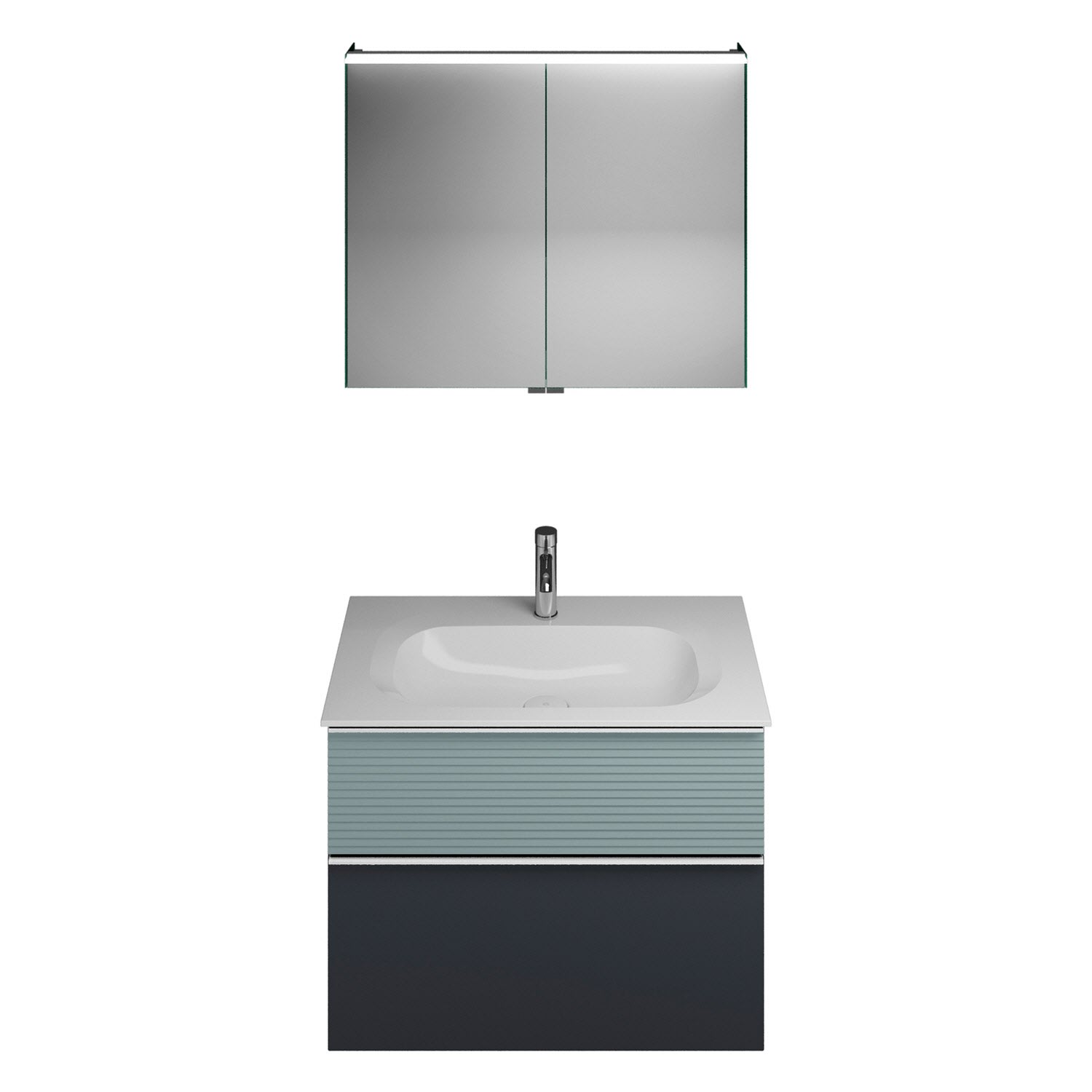 burgbad Fiumo Badmöbel-Set 82 cm mit Waschtisch und Unterschrank mit Griff G0146 sowie mit Spiegelschrank