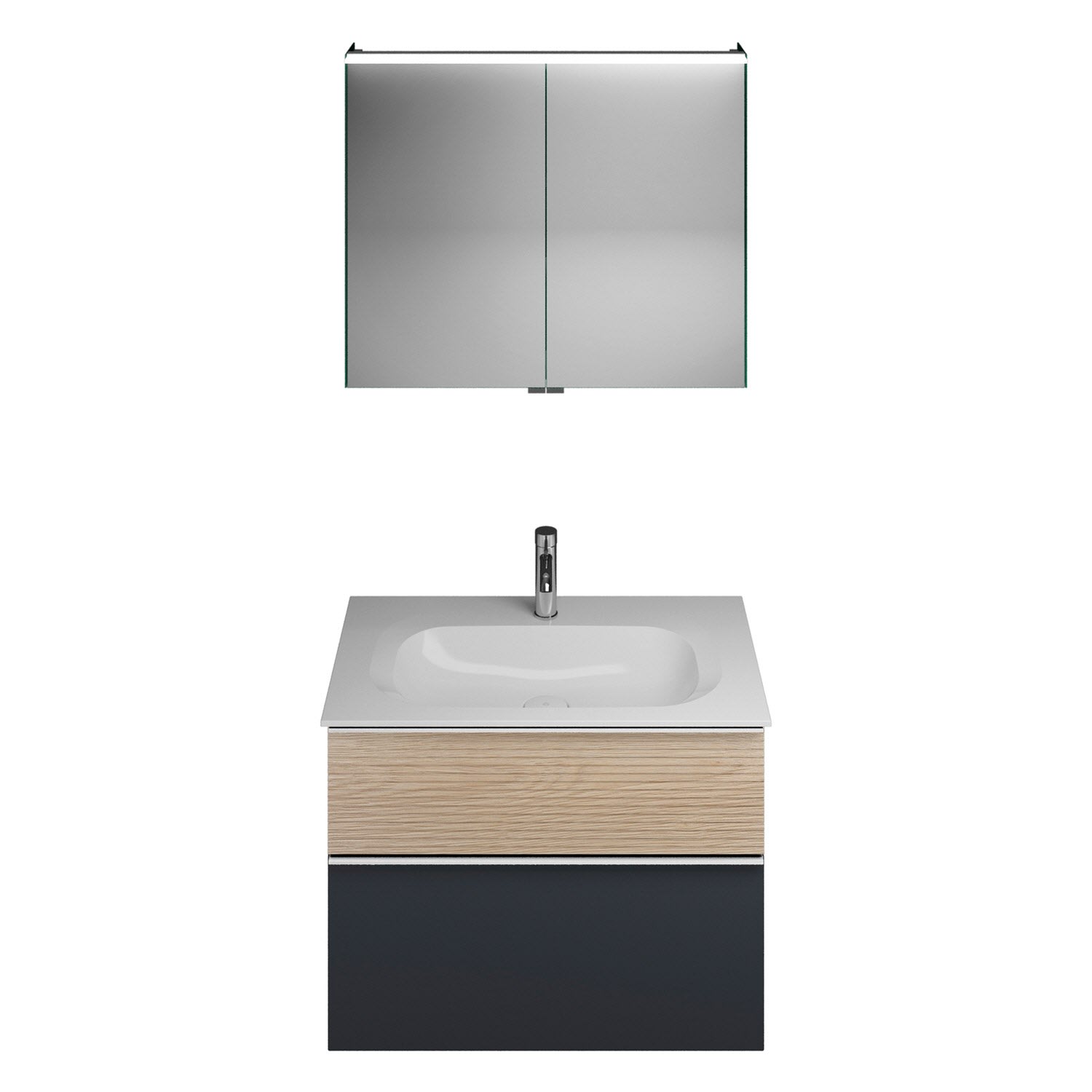 burgbad Fiumo Badmöbel-Set 82 cm mit Waschtisch und Unterschrank mit Griff G0146 sowie mit Spiegelschrank