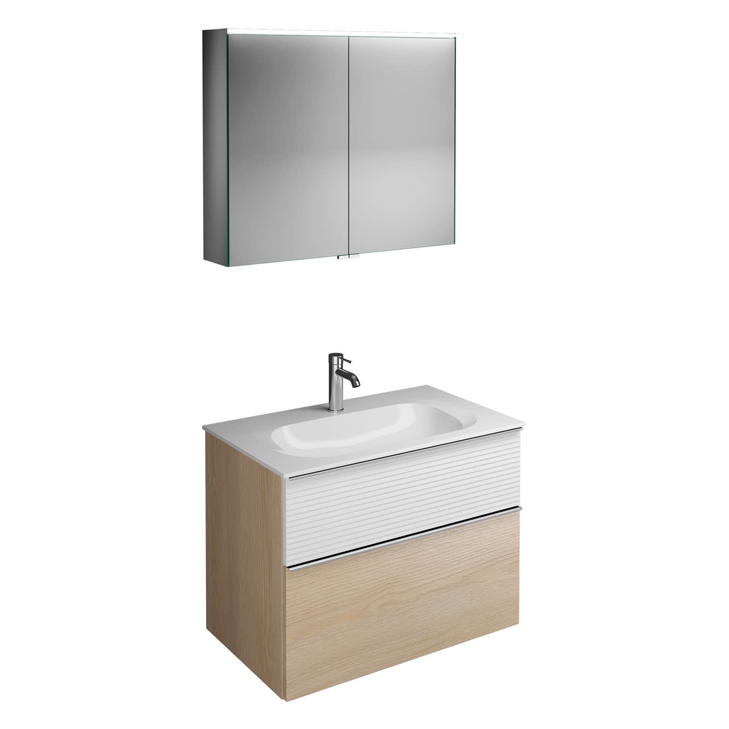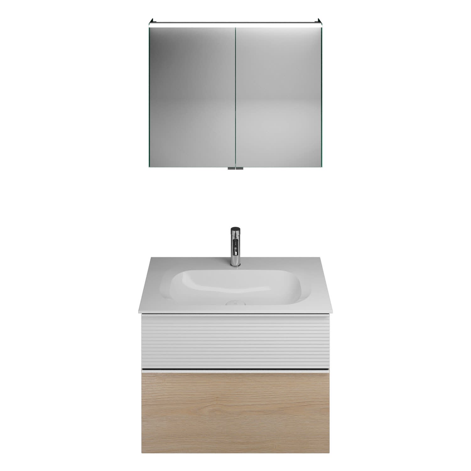 burgbad Fiumo Badmöbel-Set 82 cm mit Waschtisch und Unterschrank mit Griff G0146 sowie mit Spiegelschrank