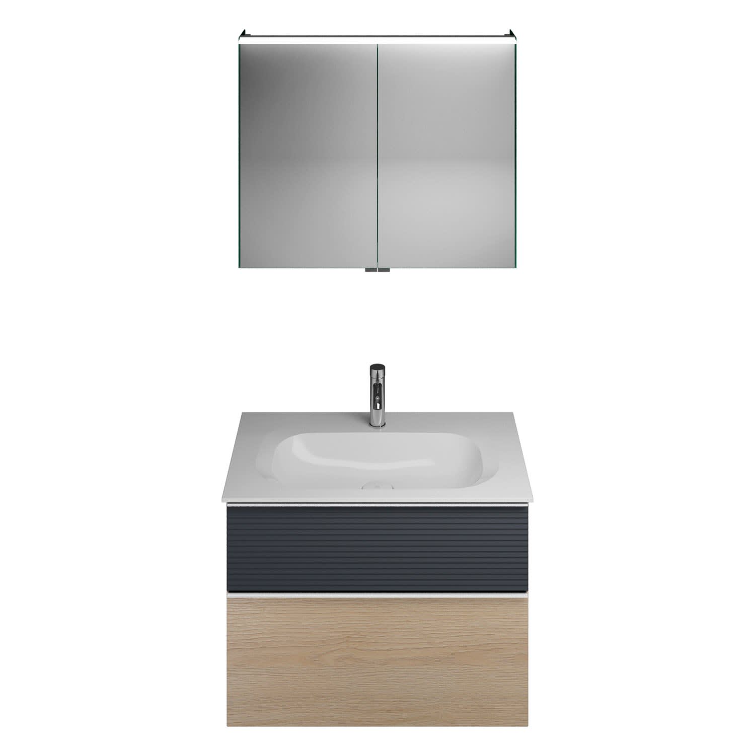 burgbad Fiumo Badmöbel-Set 82 cm mit Waschtisch und Unterschrank mit Griff G0146 sowie mit Spiegelschrank