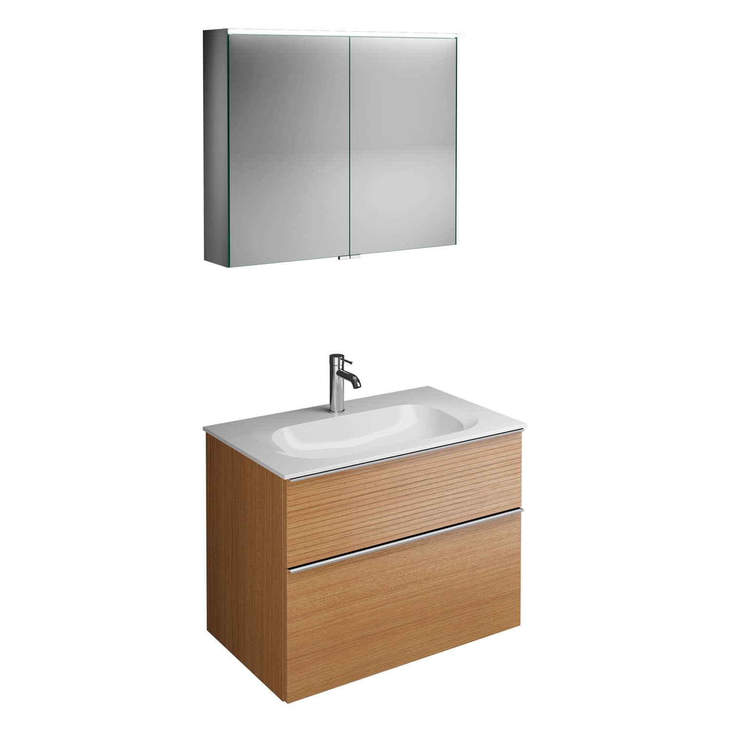 burgbad Fiumo Badmöbel-Set 82 cm mit Waschtisch und Unterschrank mit Griff G0146 sowie mit Spiegelschrank