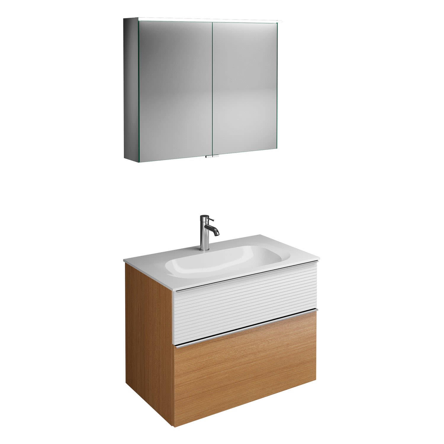 burgbad Fiumo Badmöbel-Set 82 cm mit Waschtisch und Unterschrank mit Griff G0146 sowie mit Spiegelschrank