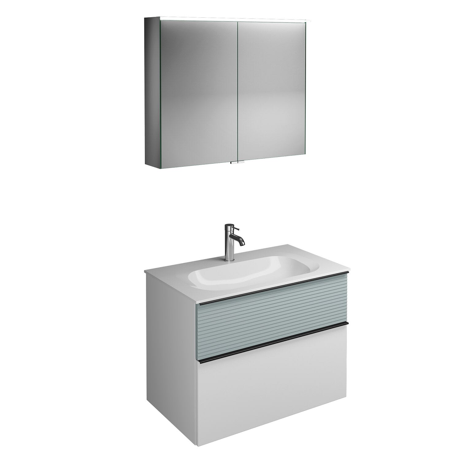 burgbad Fiumo Badmöbel-Set 82 cm mit Waschtisch und Unterschrank mit Griff G0200 sowie mit Spiegelschrank