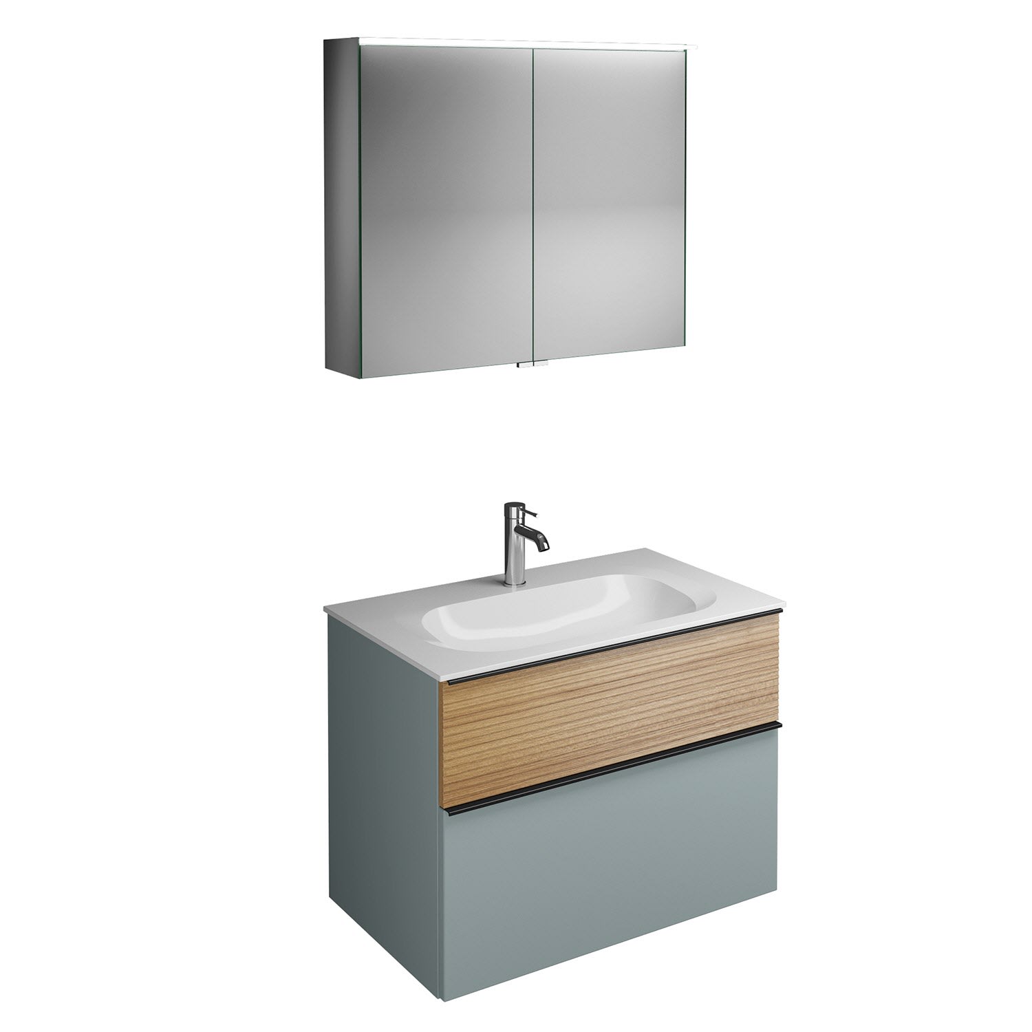 burgbad Fiumo Badmöbel-Set 82 cm mit Waschtisch und Unterschrank mit Griff G0200 sowie mit Spiegelschrank