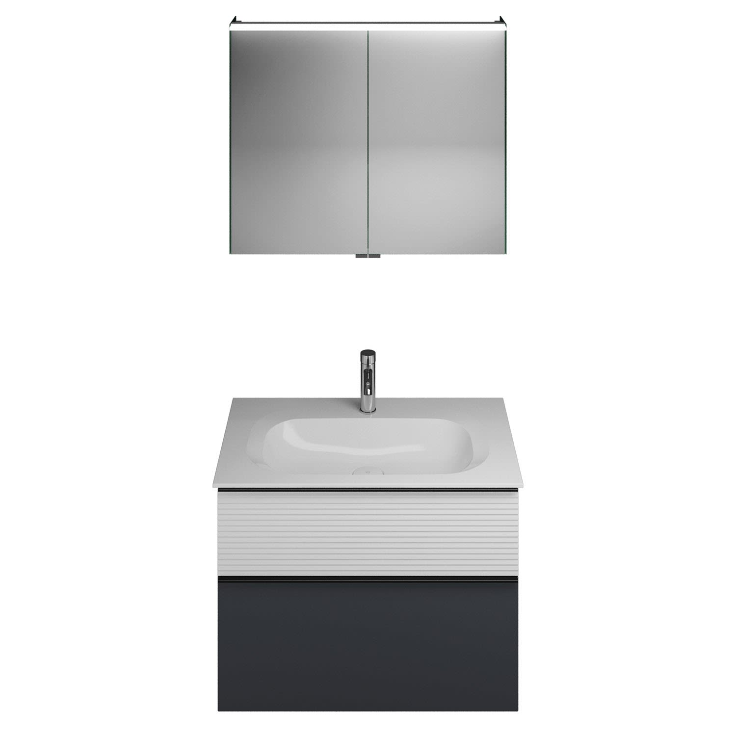 burgbad Fiumo Badmöbel-Set 82 cm mit Waschtisch und Unterschrank mit Griff G0200 sowie mit Spiegelschrank