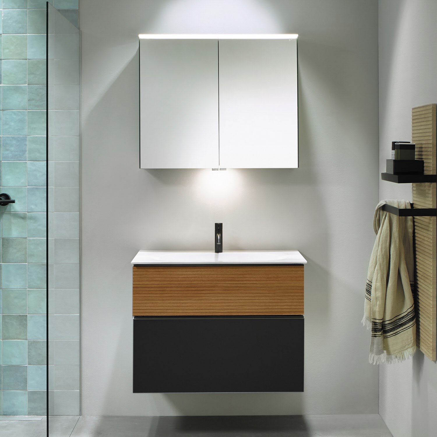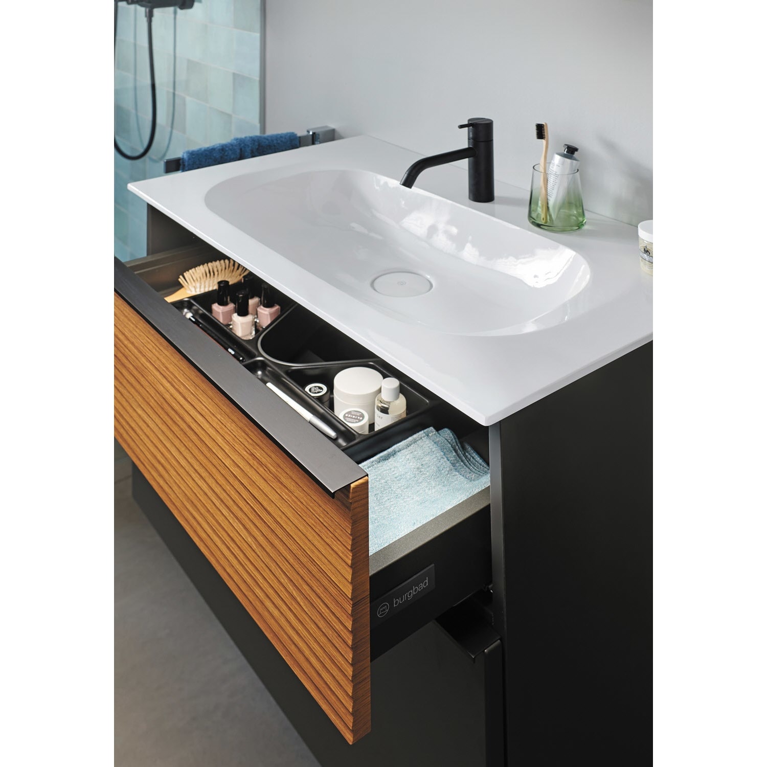 burgbad Fiumo Badmöbel-Set 82 cm mit Waschtisch und Unterschrank mit Griff G0200 sowie mit Spiegelschrank