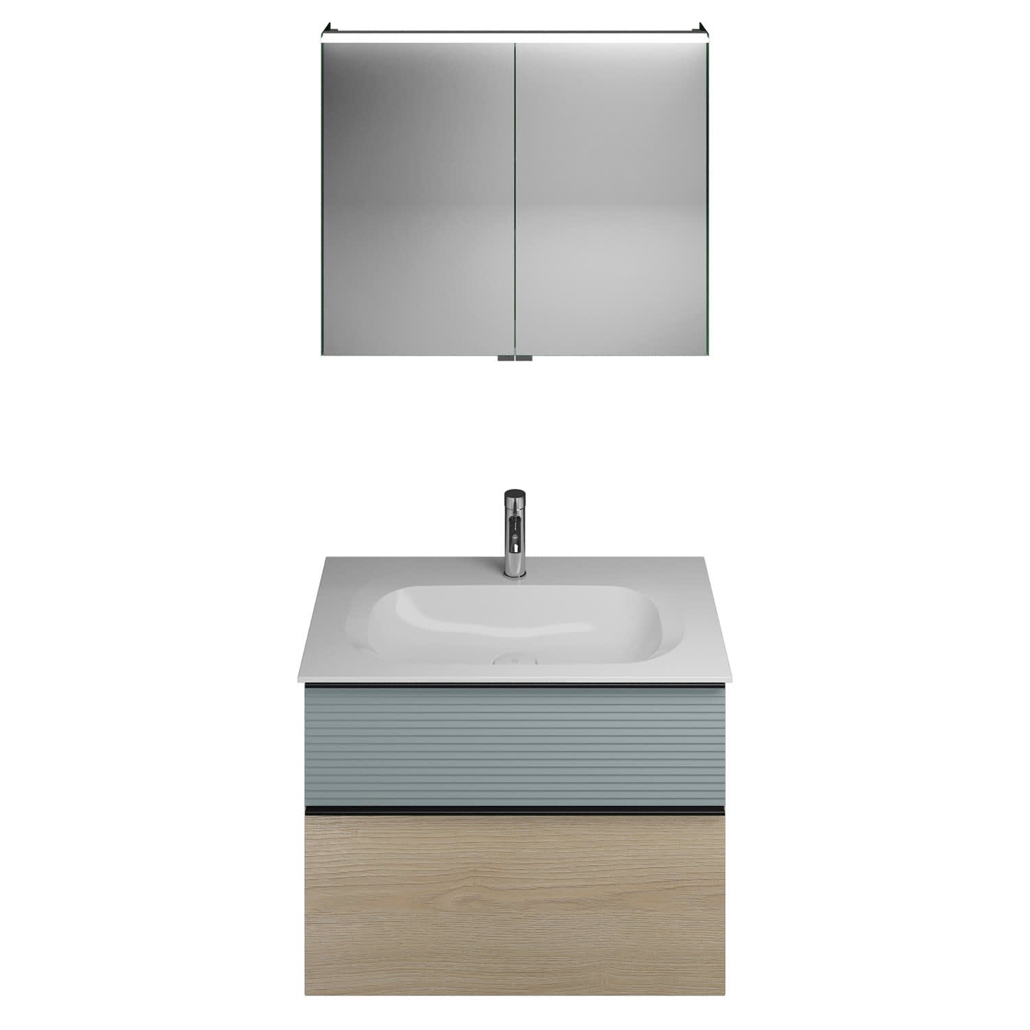 burgbad Fiumo Badmöbel-Set 82 cm mit Waschtisch und Unterschrank mit Griff G0200 sowie mit Spiegelschrank