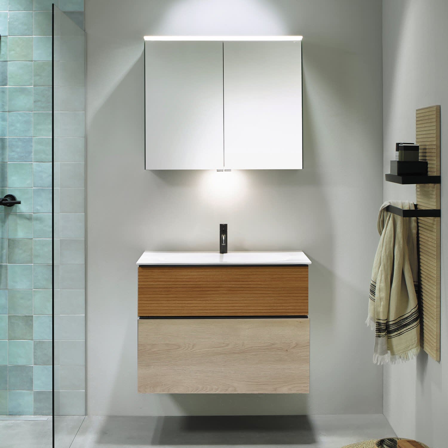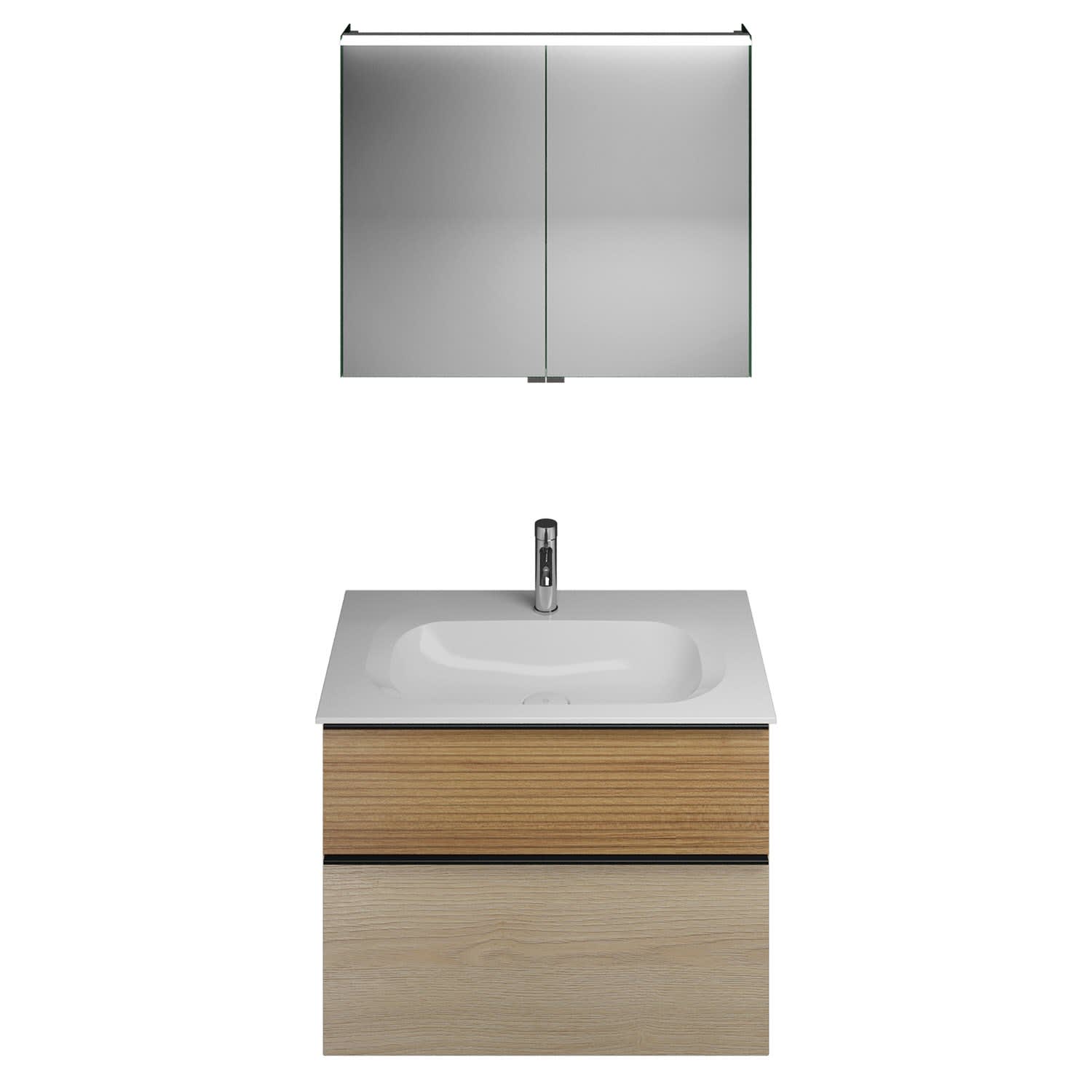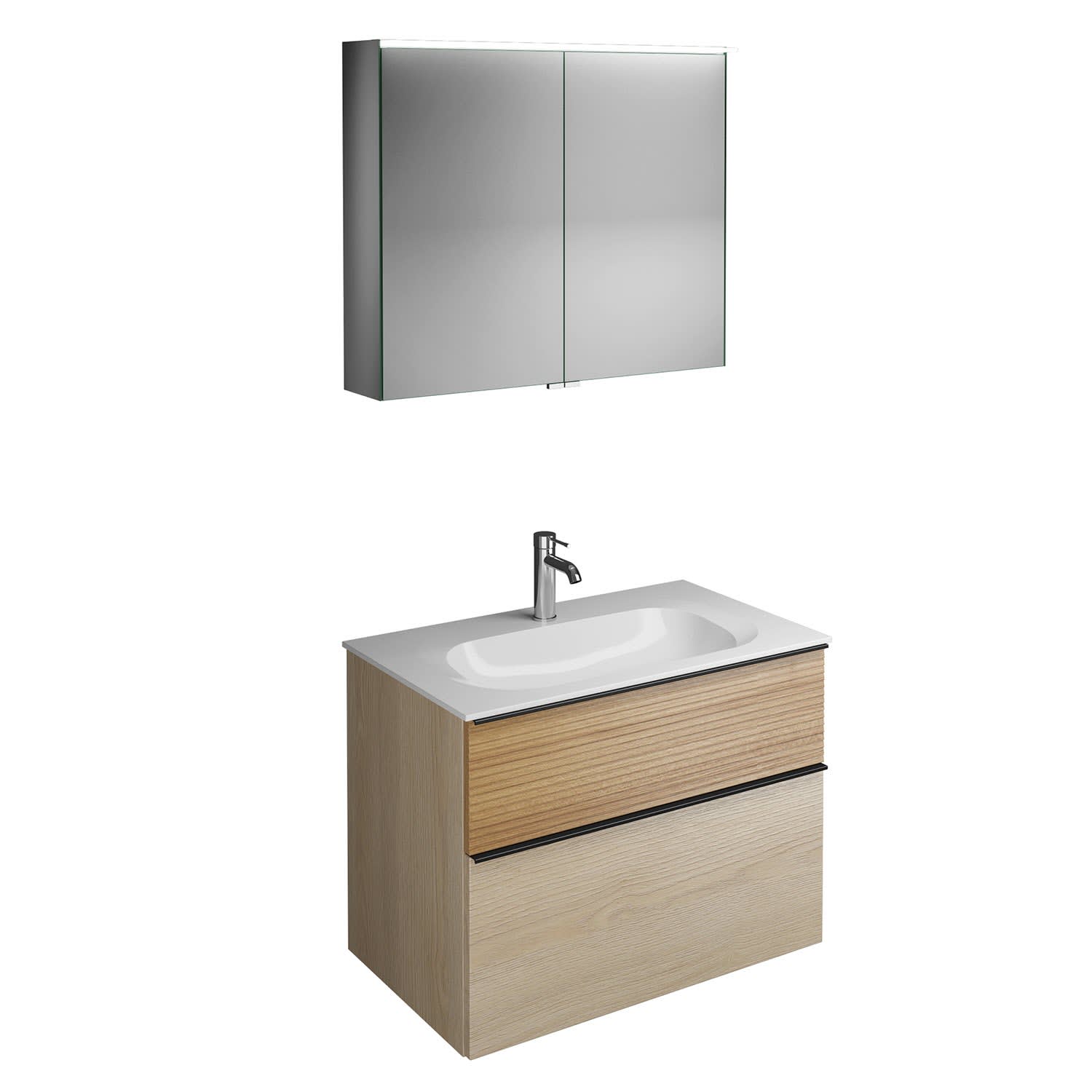 burgbad Fiumo Badmöbel-Set 82 cm mit Waschtisch und Unterschrank mit Griff G0200 sowie mit Spiegelschrank