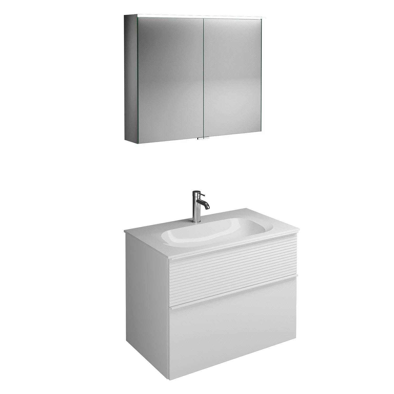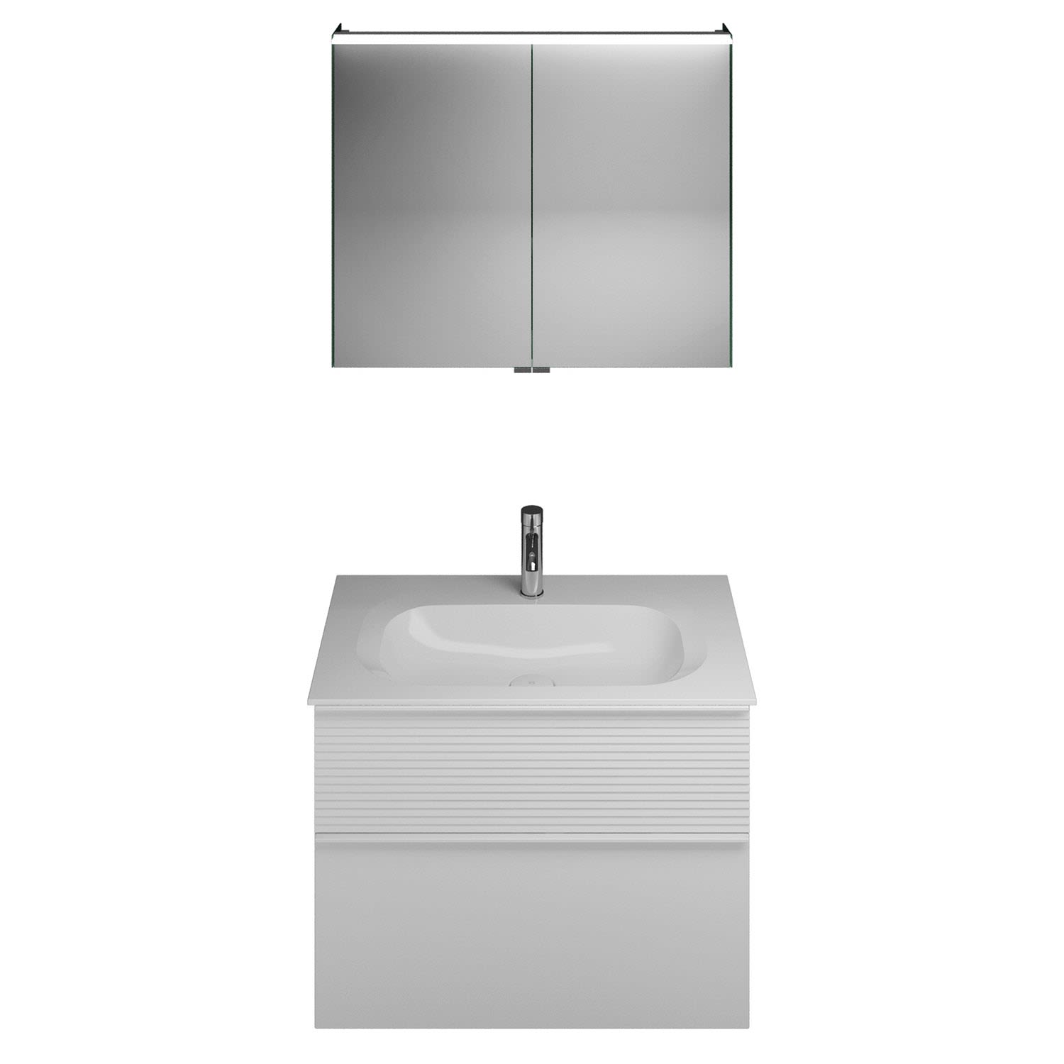 burgbad Fiumo Badmöbel-Set 82 cm mit Waschtisch und Unterschrank mit Griff G0223 sowie mit Spiegelschrank