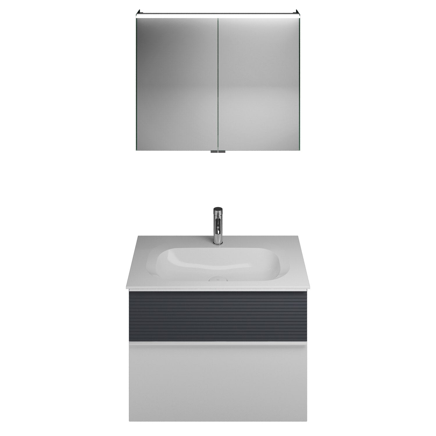 burgbad Fiumo Badmöbel-Set 82 cm mit Waschtisch und Unterschrank mit Griff G0223 sowie mit Spiegelschrank