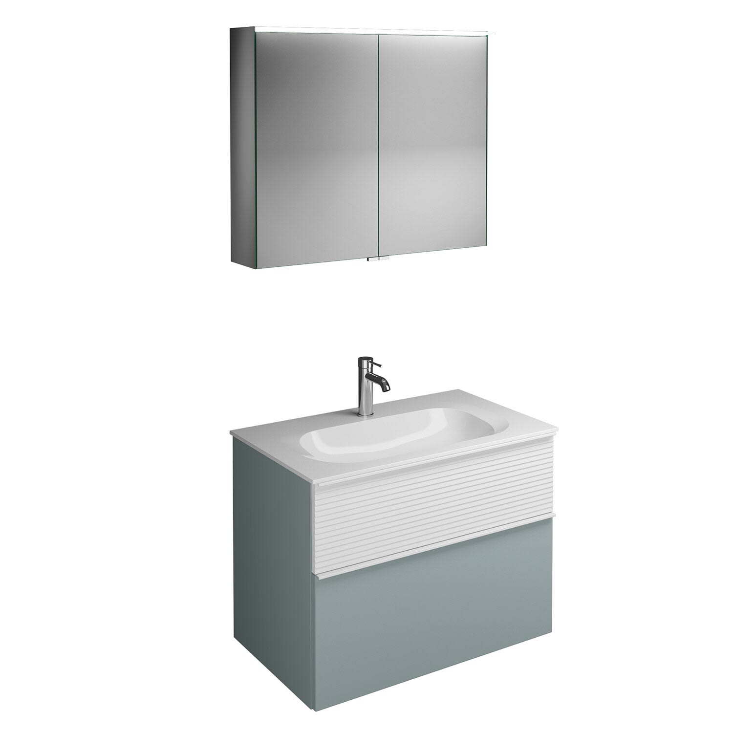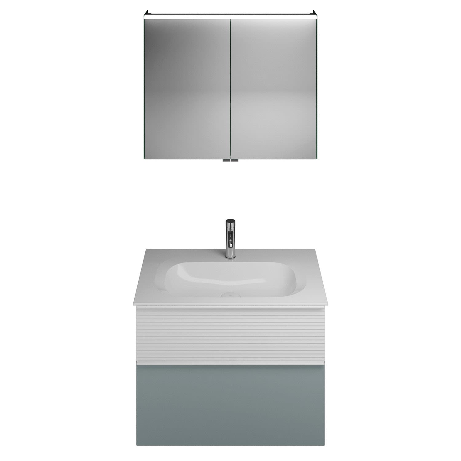 burgbad Fiumo Badmöbel-Set 82 cm mit Waschtisch und Unterschrank mit Griff G0223 sowie mit Spiegelschrank