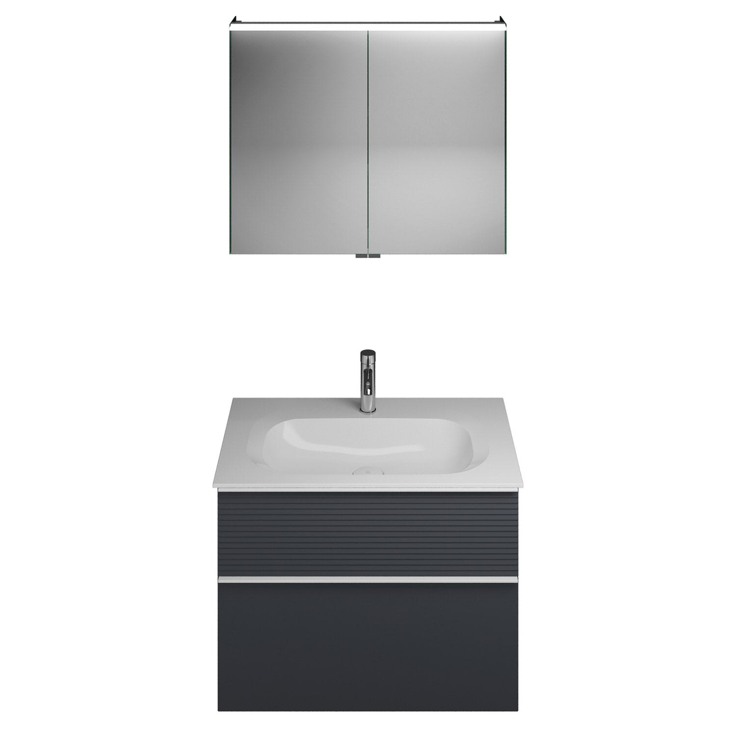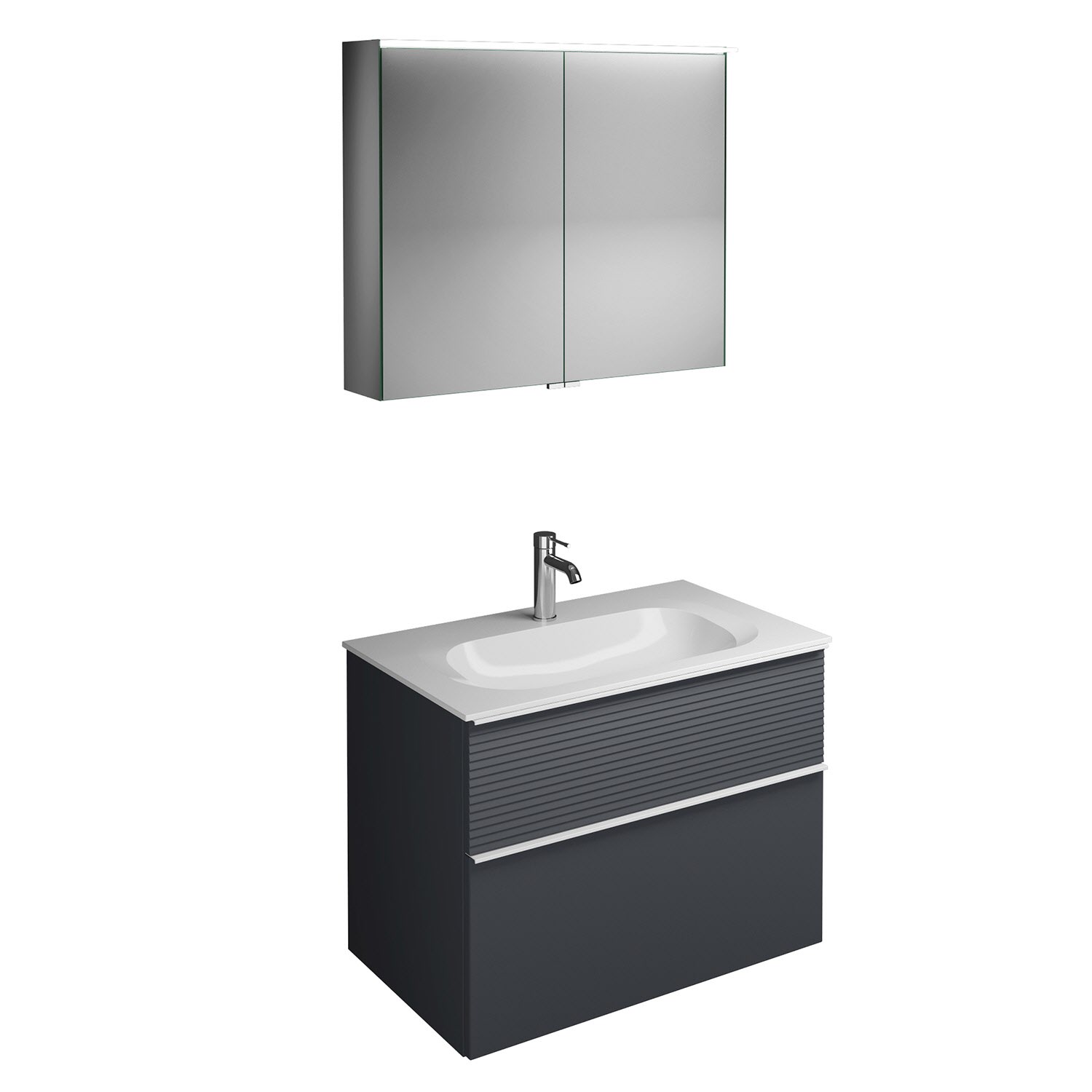 burgbad Fiumo Badmöbel-Set 82 cm mit Waschtisch und Unterschrank mit Griff G0223 sowie mit Spiegelschrank
