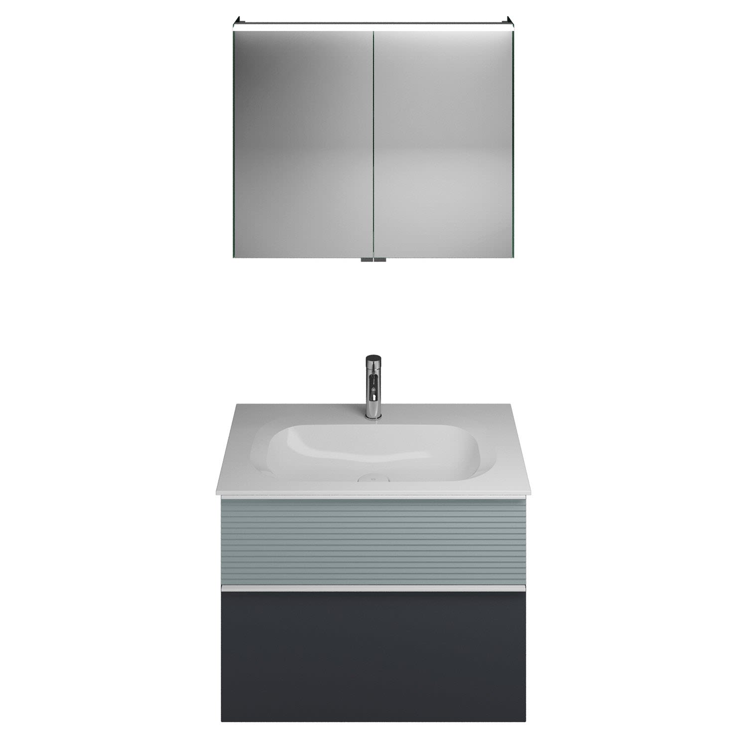 burgbad Fiumo Badmöbel-Set 82 cm mit Waschtisch und Unterschrank mit Griff G0223 sowie mit Spiegelschrank