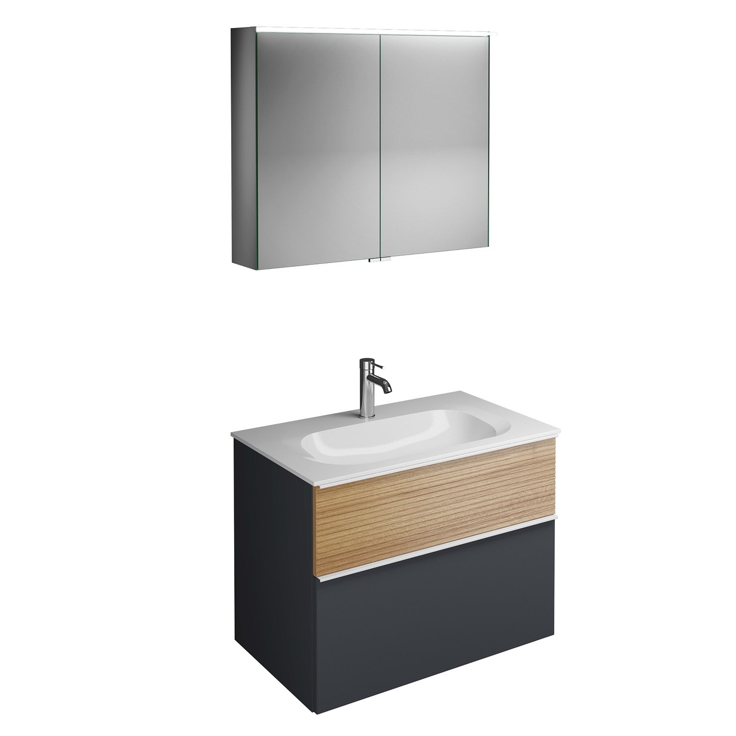 burgbad Fiumo Badmöbel-Set 82 cm mit Waschtisch und Unterschrank mit Griff G0223 sowie mit Spiegelschrank