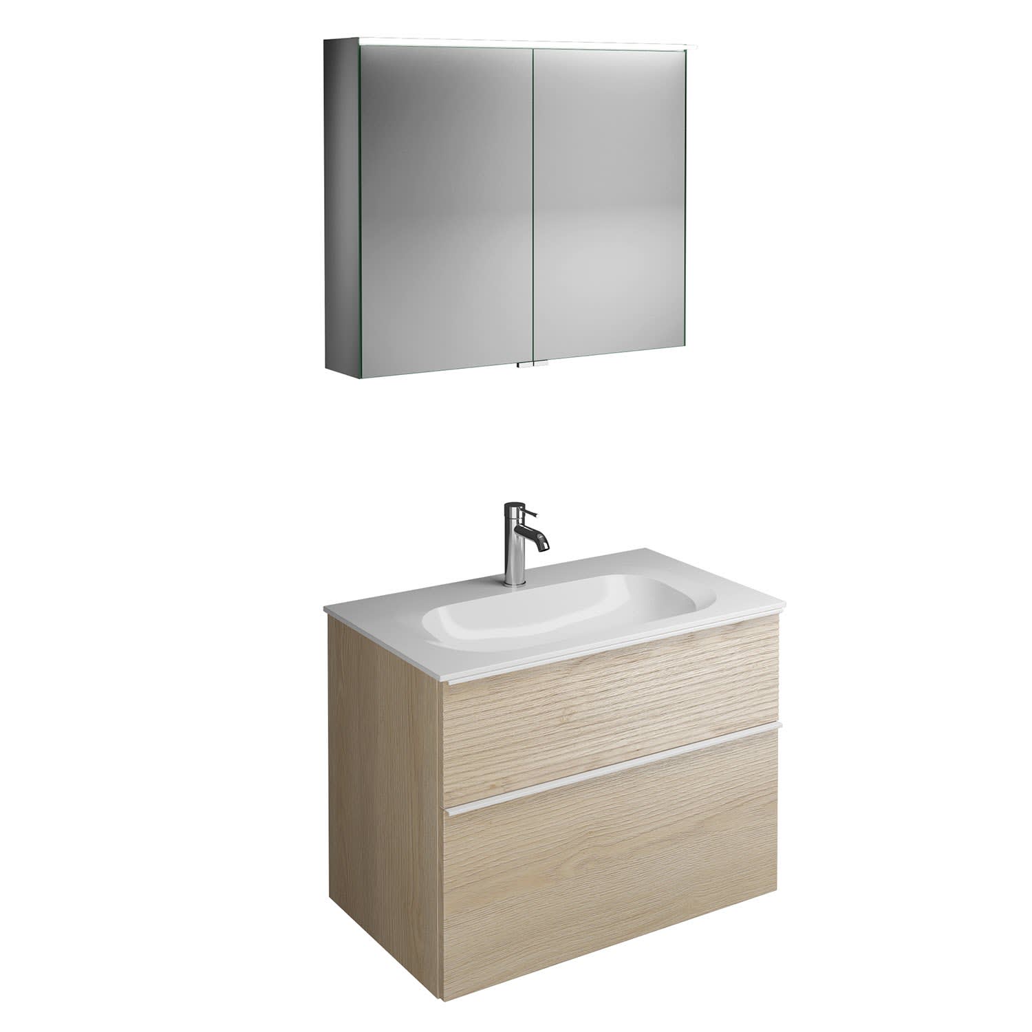 burgbad Fiumo Badmöbel-Set 82 cm mit Waschtisch und Unterschrank mit Griff G0223 sowie mit Spiegelschrank