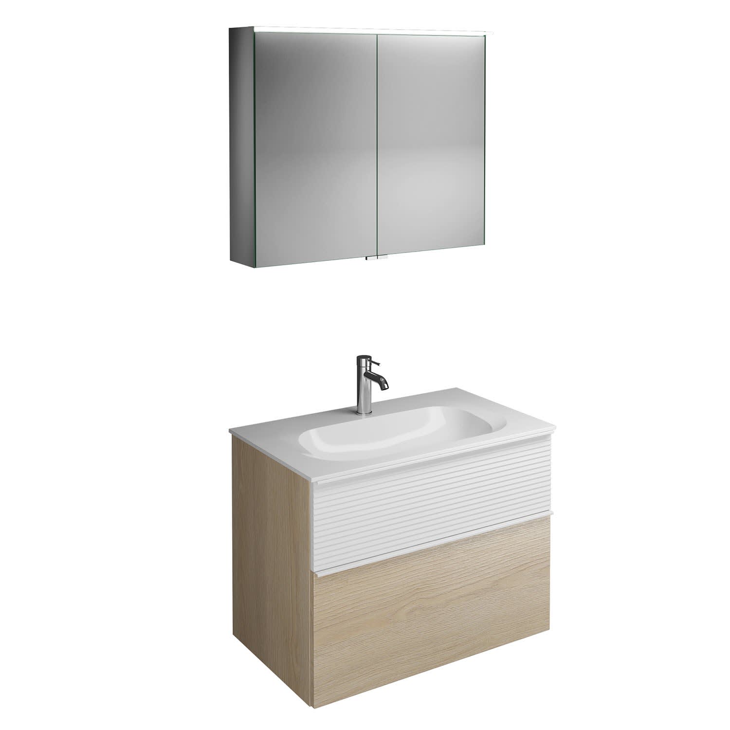 burgbad Fiumo Badmöbel-Set 82 cm mit Waschtisch und Unterschrank mit Griff G0223 sowie mit Spiegelschrank