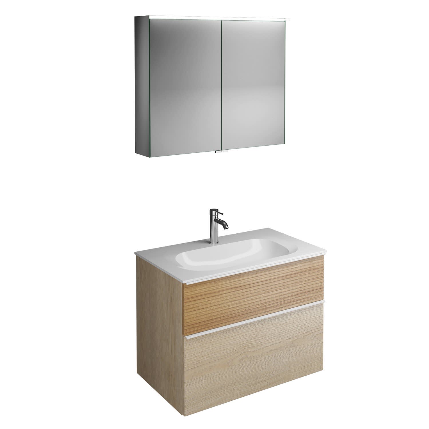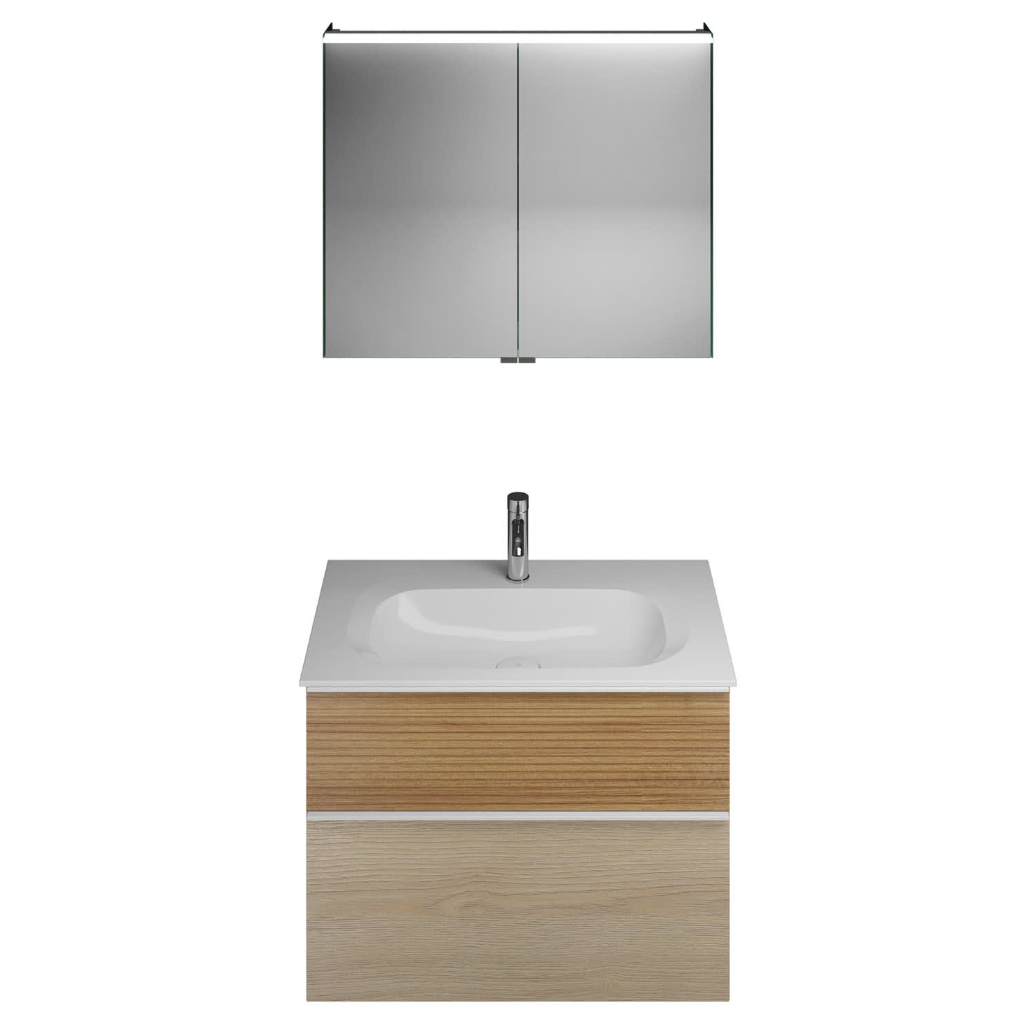 burgbad Fiumo Badmöbel-Set 82 cm mit Waschtisch und Unterschrank mit Griff G0223 sowie mit Spiegelschrank