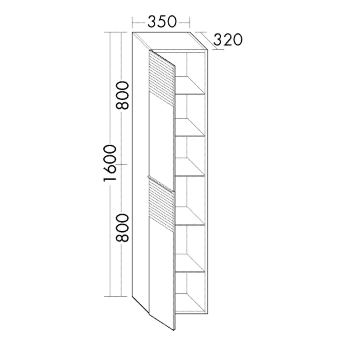 burgbad Fiumo Hochschrank 35 x 32 x 160 cm, 2 Türen, Anschlag links, mit Griff G0146, mit Plissée-Struktur oben und unten