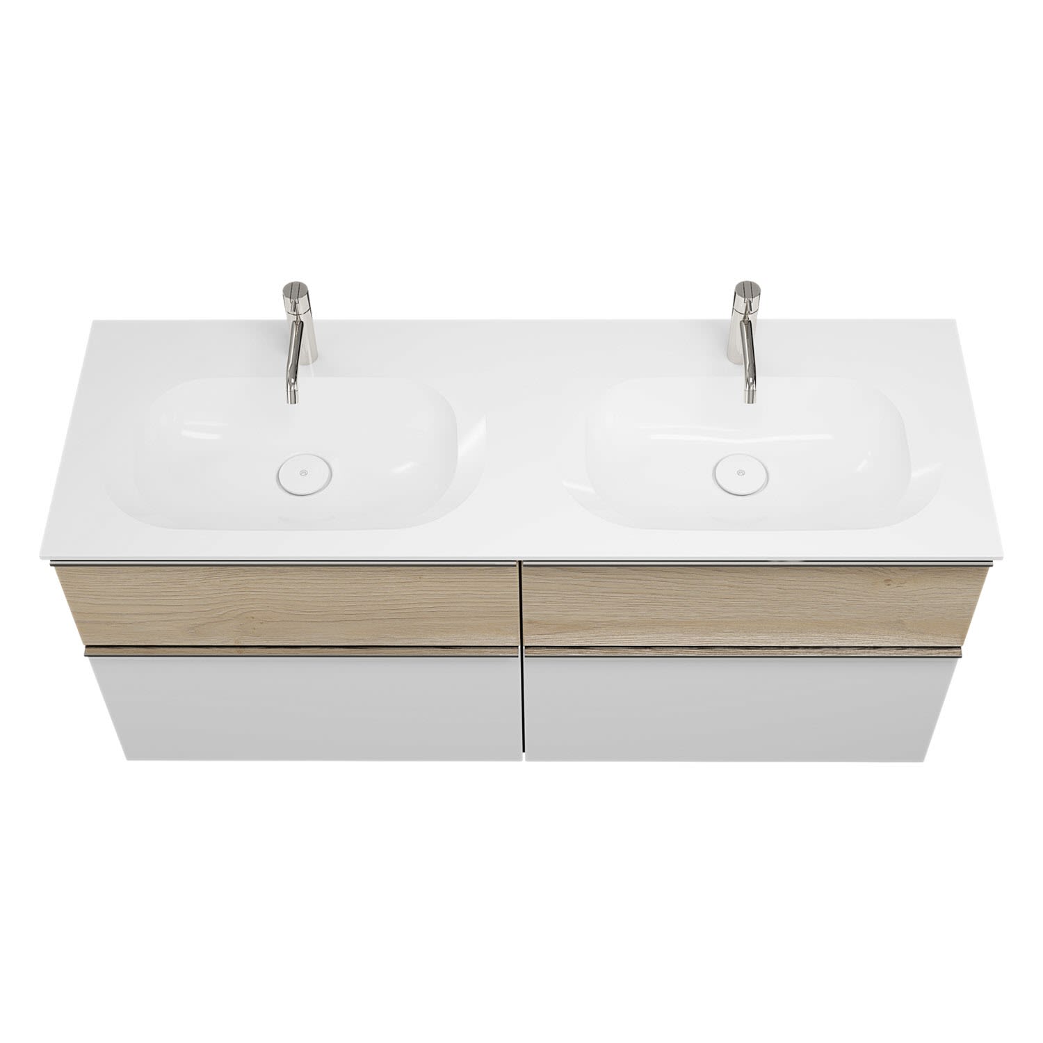 burgbad Fiumo Mineralguss-Doppelwaschtisch mit Unterschrank 142 cm, mit Griff G0146