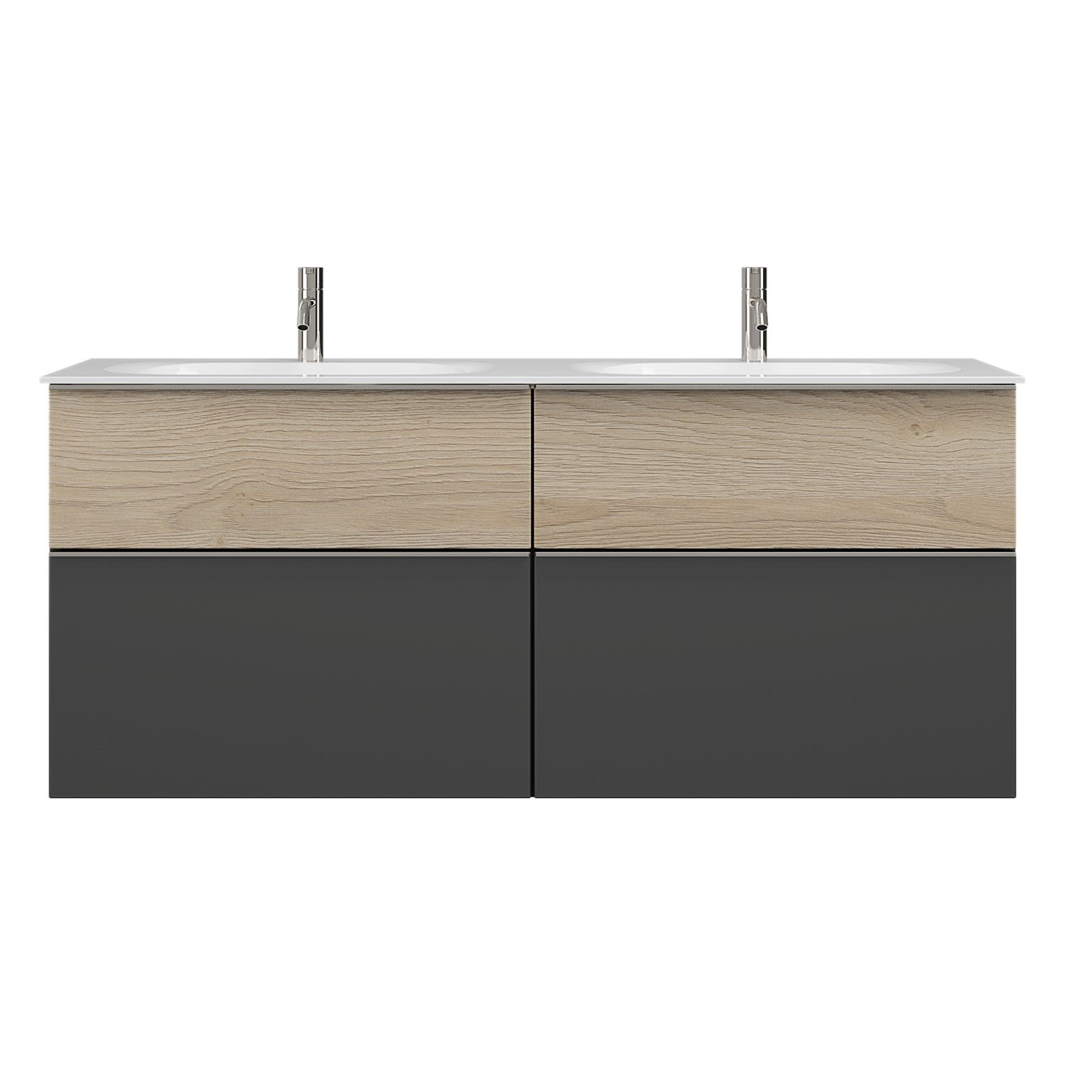 - 2 Schubladen oben mit Siphonausschnitt und Inneneinteilung