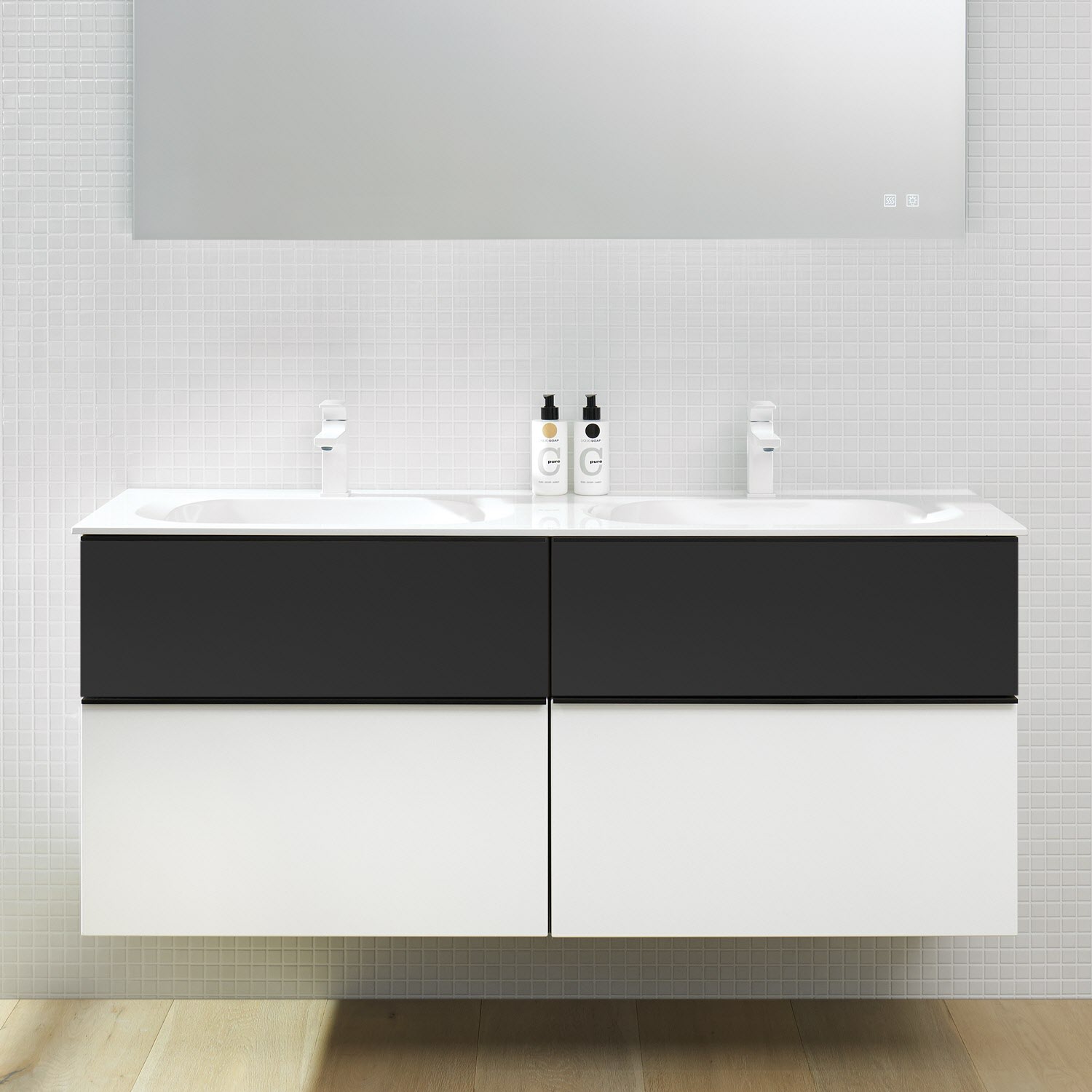 burgbad Fiumo Mineralguss-Doppelwaschtisch mit Unterschrank 142 cm, mit Griff G0200