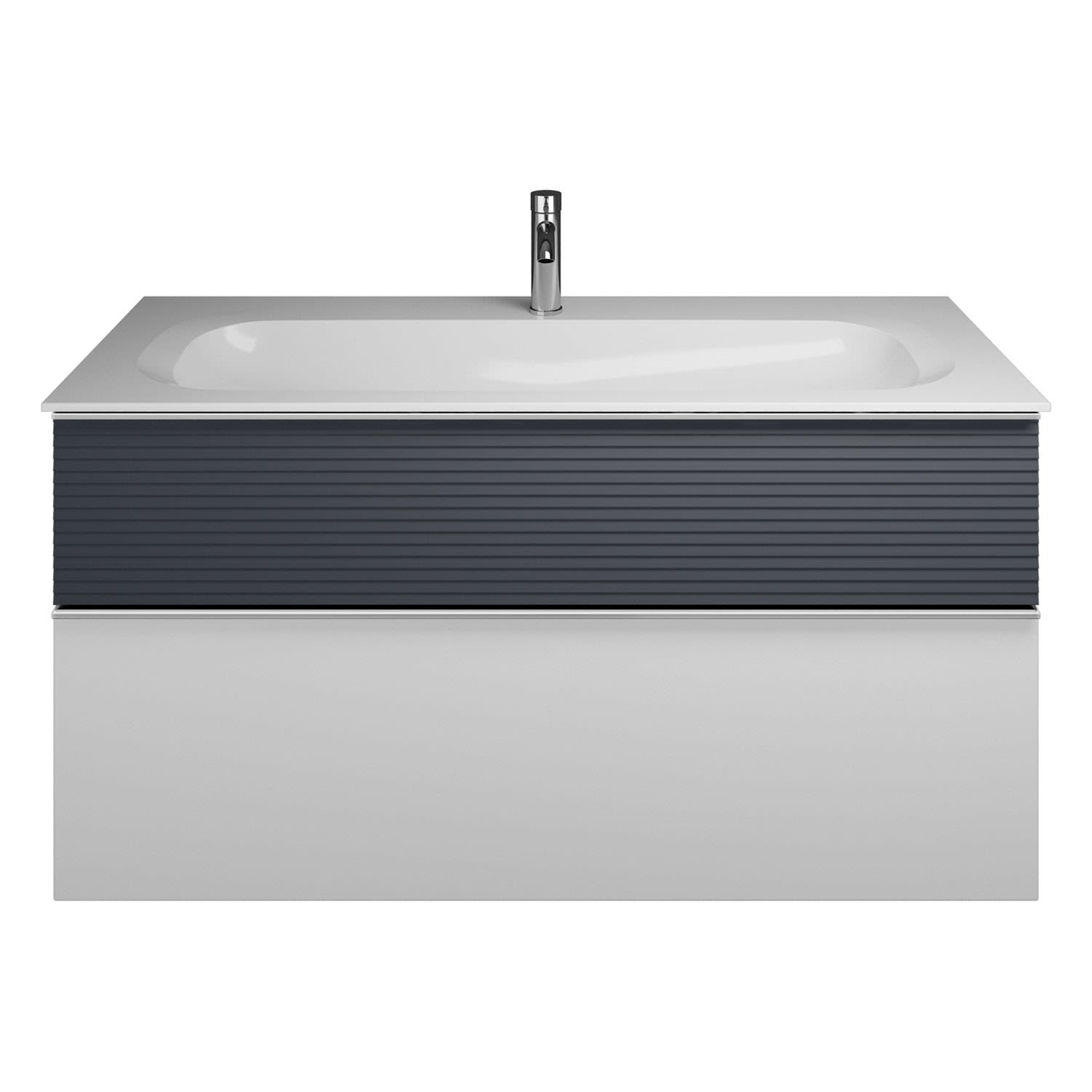 burgbad Fiumo Mineralguss-Waschtisch mit Unterschrank 122 cm, mit 1 Hahnloch, mit Griff G0146, oben mit Plissée-Struktur