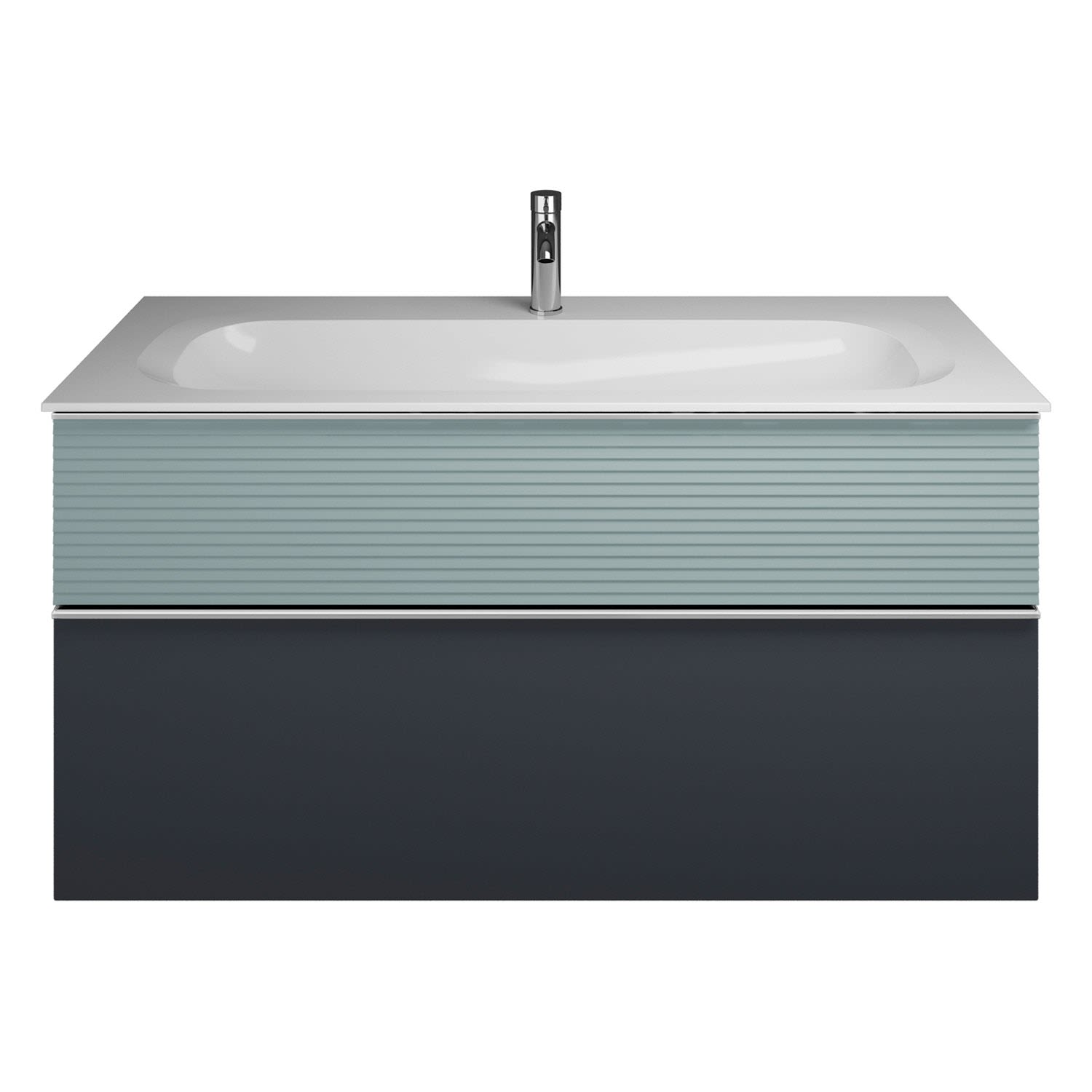 burgbad Fiumo Mineralguss-Waschtisch mit Unterschrank 122 cm, mit 1 Hahnloch, mit Griff G0146, oben mit Plissée-Struktur