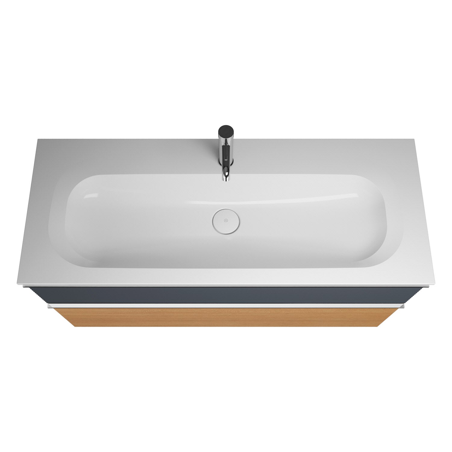 burgbad Fiumo Mineralguss-Waschtisch mit Unterschrank 122 cm, mit 1 Hahnloch, mit Griff G0146, oben mit Plissée-Struktur