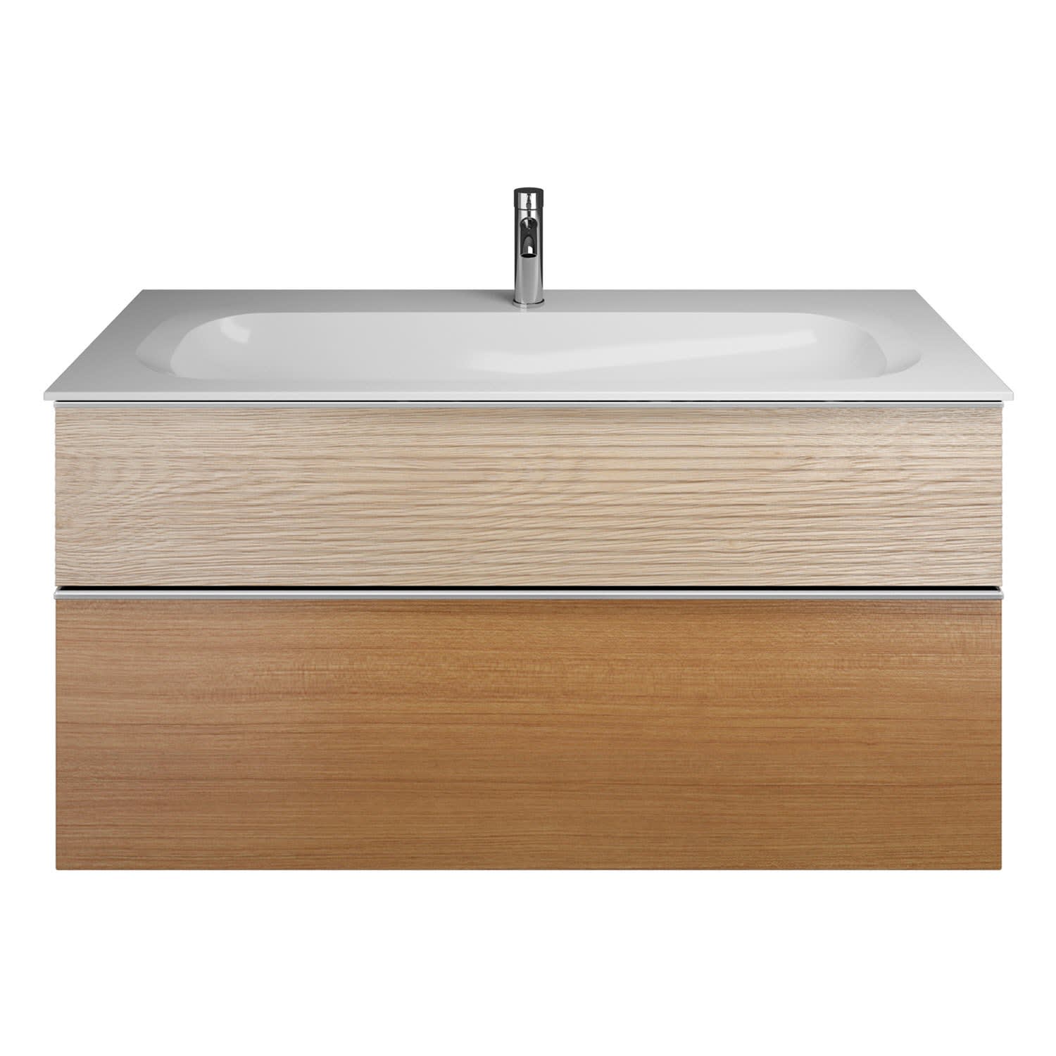 burgbad Fiumo Mineralguss-Waschtisch mit Unterschrank 122 cm, mit 1 Hahnloch, mit Griff G0146, oben mit Plissée-Struktur