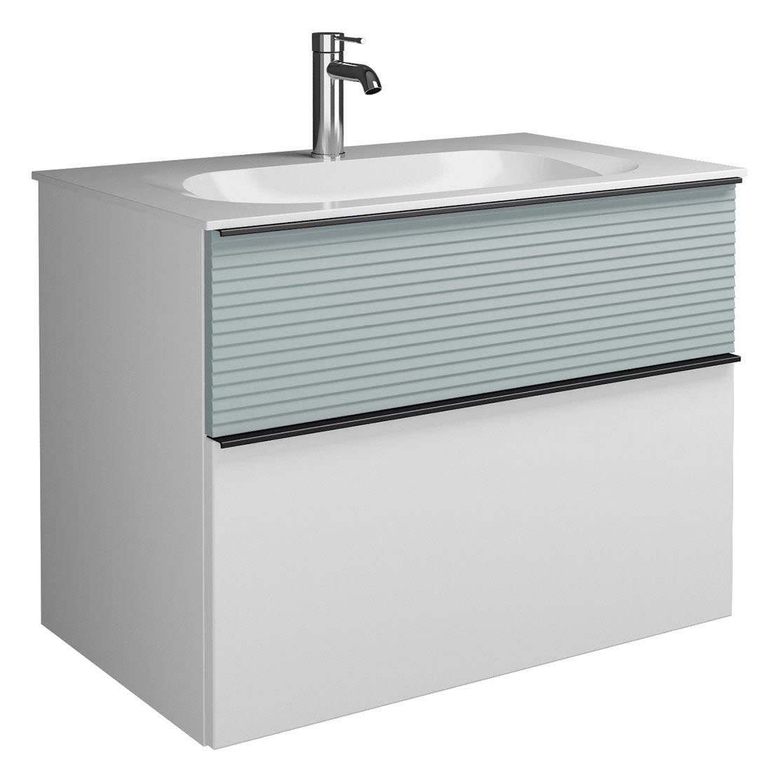 burgbad Fiumo Mineralguss-Waschtisch mit Unterschrank 82 cm, mit Griff G0200, oben mit Plissée-Struktur