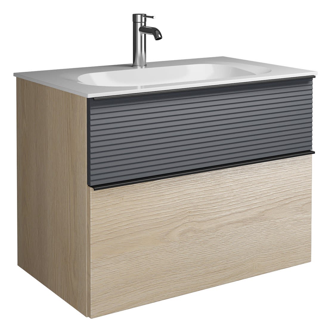 burgbad Fiumo Mineralguss-Waschtisch mit Unterschrank 82 cm, mit Griff G0200, oben mit Plissée-Struktur