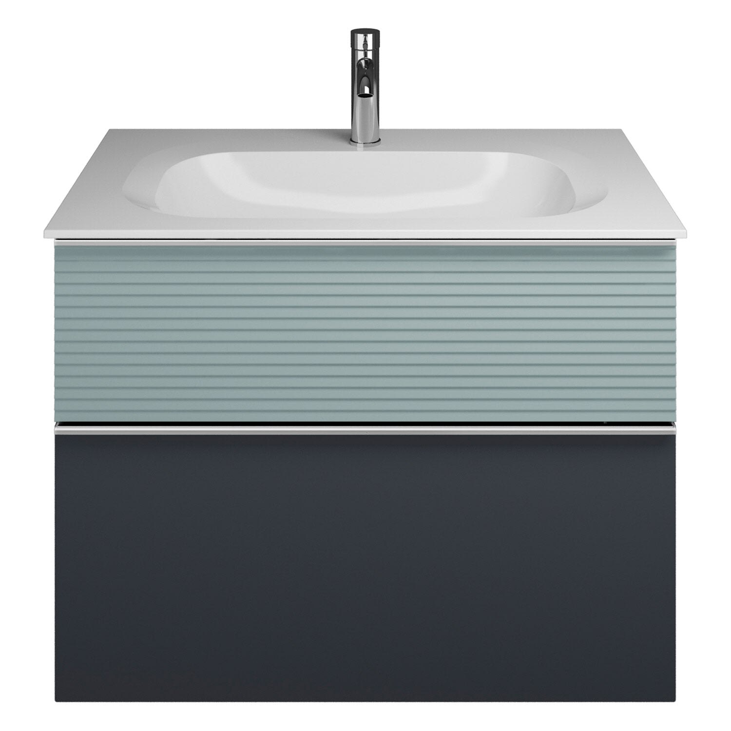 burgbad Fiumo Mineralguss-Waschtisch mit Unterschrank 82 cm, mit Griff G0146, oben mit Plissée-Struktur