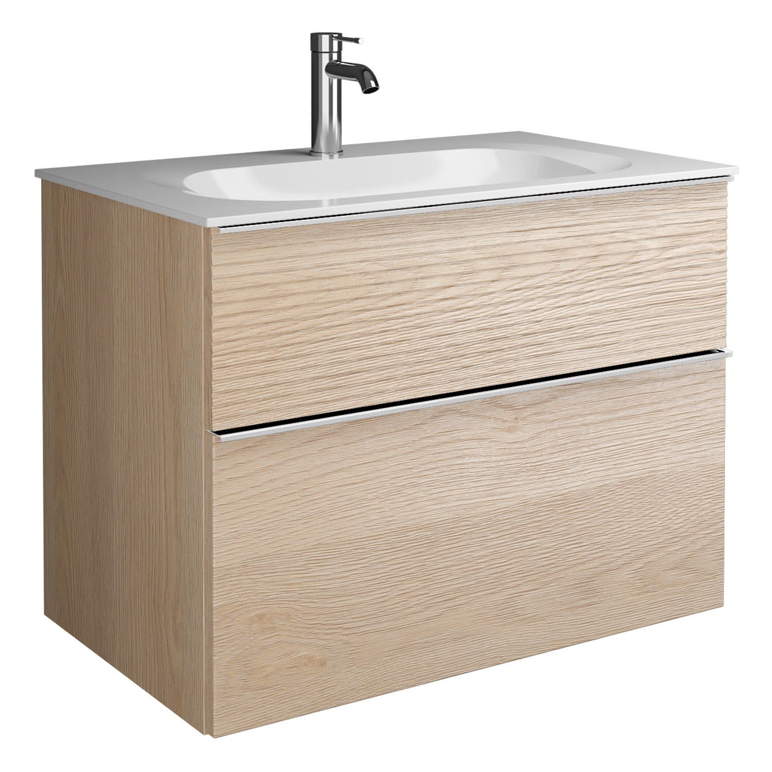burgbad Fiumo Mineralguss-Waschtisch mit Unterschrank 82 cm, mit Griff G0146, oben mit Plissée-Struktur