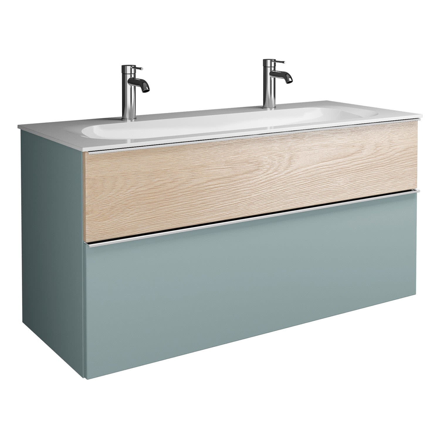 burgbad Fiumo Mineralguss-Waschtisch mit Unterschrank 122 cm, mit 2 Hahnlöcher, mit Griff G0146